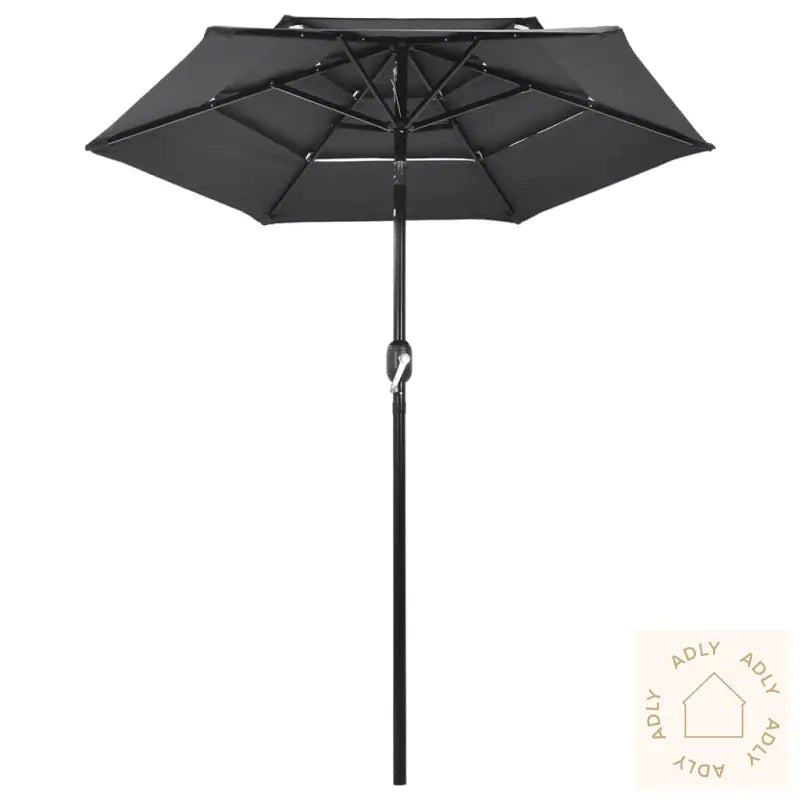 Denne hageparasollen med 3 nivåer er et smart valg når du vil nyte utendørsområdene dine uten å bekymre deg for sterke UV-stråler eller fuktighet. Parasollen passer perfekt på terrassen, uteplassen eller i hagen, og gir deg en behagelig skygge enten du har den stående over et spisebord eller ved loungemøblene.