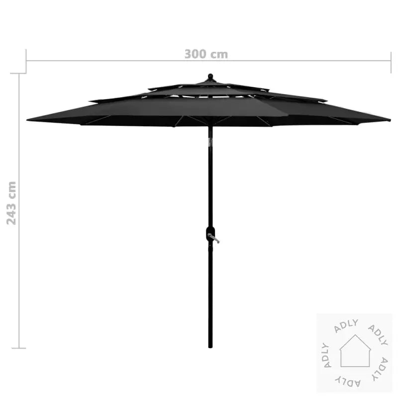 Denne hageparasollen med 3 nivåer er det perfekte valget når du ønsker å kombinere komfort og stil i uterommet ditt. Den gir effektiv beskyttelse mot både skadelige UV-stråler og regndråper, enten du bruker den på terrassen, uteplassen eller i hagen sammen med favoritt hagemøbler. Parasollen bidrar til at du og gjestene dine kan nyte utetiden lenger, uansett værforhold.