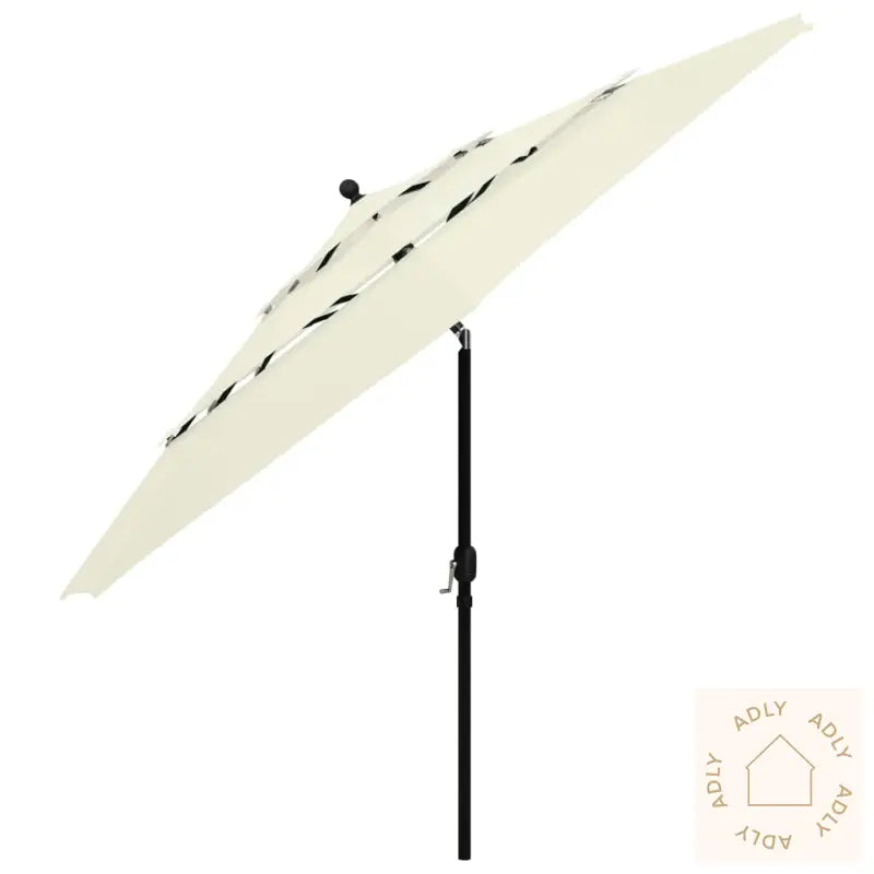 Denne hageparasollen med 3 nivåer er et smart valg for deg som ønsker stilfull beskyttelse mot både skadelige UV-stråler og fukt på terrassen, uteplassen eller i hagen. Perfekt som en del av dine utendørsmøbler, gir den deg mulighet til å nyte utelivet uansett værforhold.