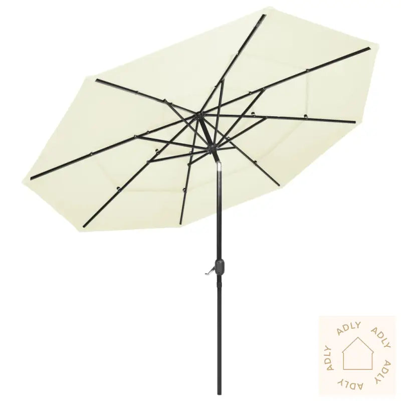 Denne hageparasollen med 3 nivåer er det perfekte valget for deg som ønsker optimal beskyttelse mot både skadelige UV-stråler og fuktighet når du slapper av på terrassen, uteplassen eller i hagen. Perfekt til bruk sammen med hagemøbler, og et smart tilskudd til dine utendørsmøbler for å gjøre uterommet ekstra komfortabelt og koselig.