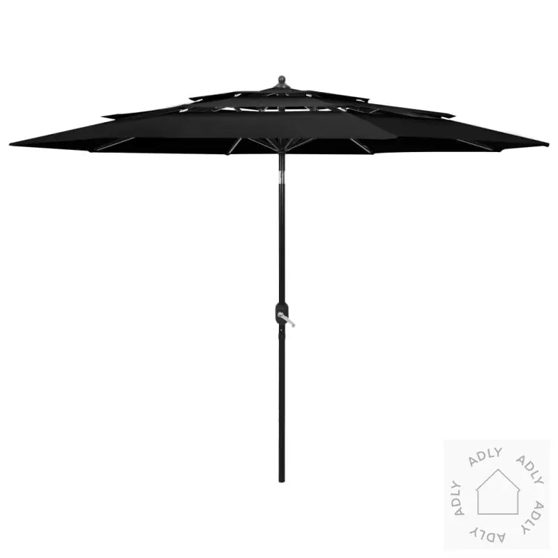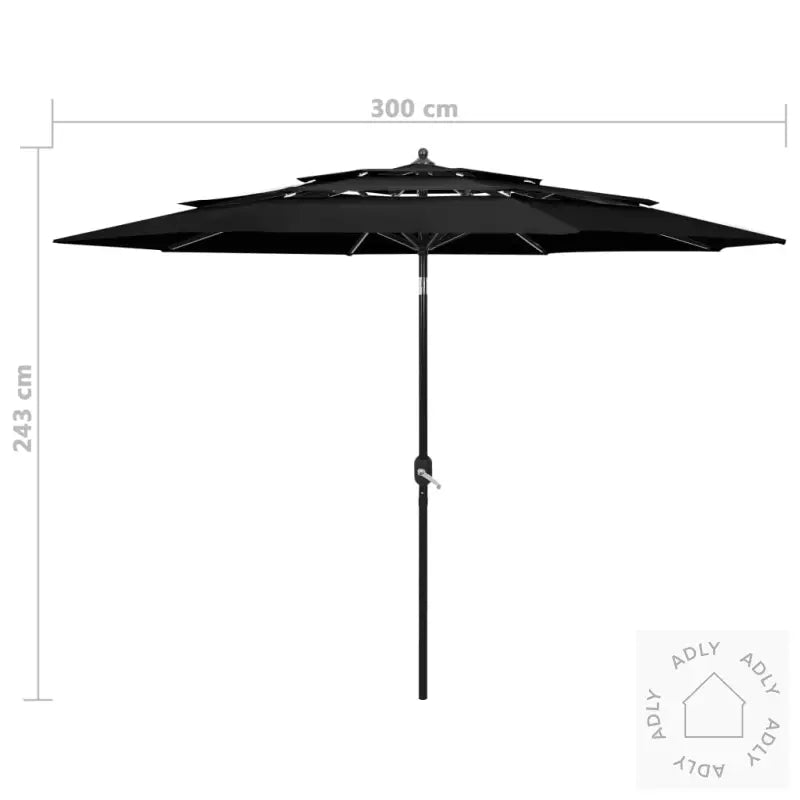 Denne hageparasollen med 3 nivåer gir deg en smart løsning for å skjerme deg mot sterke UV-stråler og regnskyll når du skal nyte terrassen, uteplassen eller hagen. Perfekt tilbehør sammen med dine hagemøbler eller andre møbler til hjemmet når du ønsker komfort og beskyttelse utendørs.