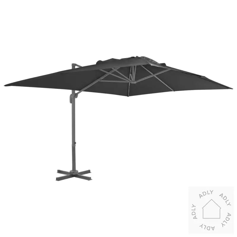 Denne hageparasollen er et smart valg for deg som vil nyte uteplassen og hagemøblene dine uten å bekymre deg for sterk sol. Parasollen har en robust aluminiumsramme og et stort, UV-bestandig trekk som gir god beskyttelse mot både sollys og lett regn. Den medfølgende ekstra parasollbasen sørger for at parasollen står stødig, uansett underlag.