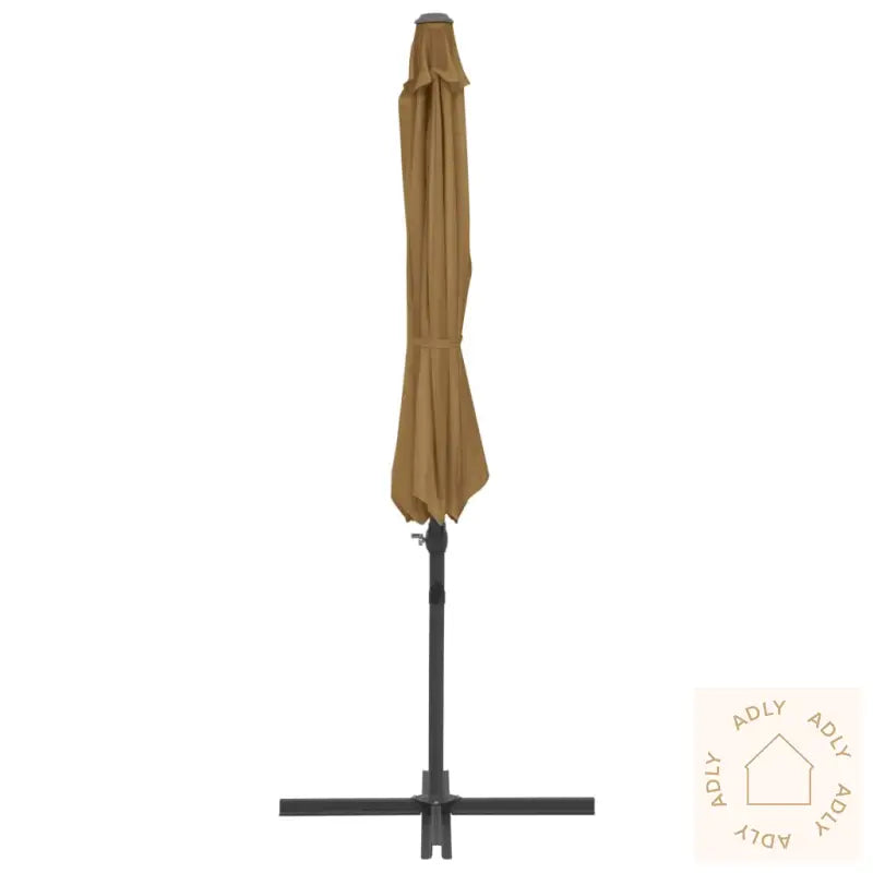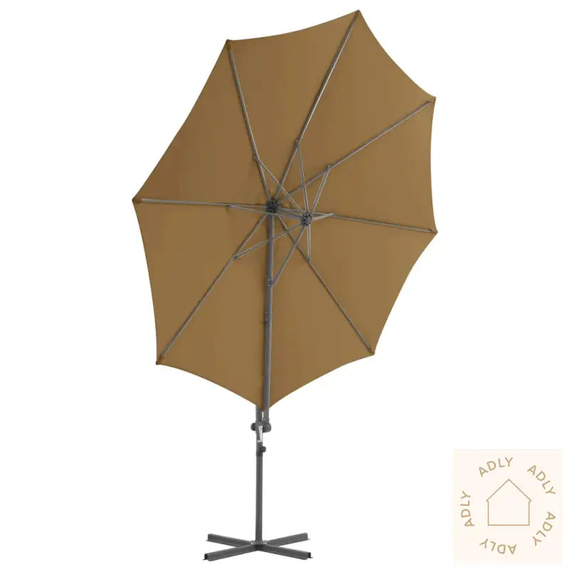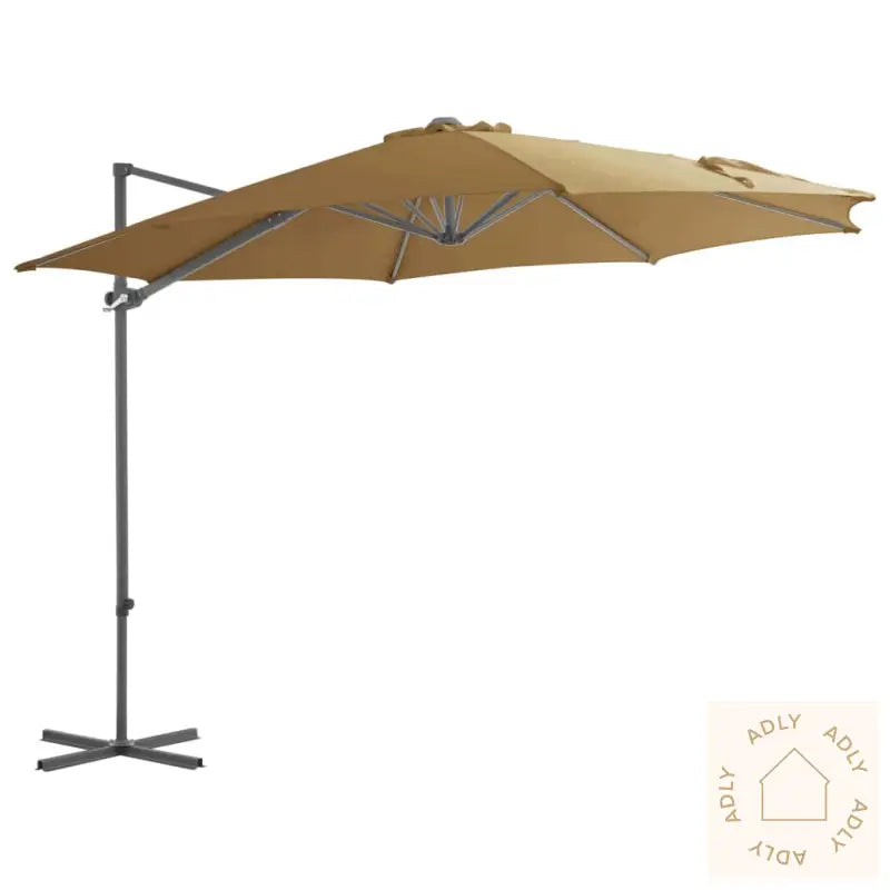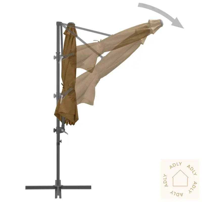 Du åpner og lukker enkelt denne parasollen ved å dreie på sveivhåndtaket. Den solide stangen sammen med de åtte robuste spilene av aluminium bidrar til at uteparasollen er ekstra holdbar og tåler værforandringer. Designet er eksklusivt og brukervennlig, siden du både kan vippe parasollen og rotere den hele veien rundt, slik at du får optimal beskyttelse mot solen akkurat der du ønsker det. Kryssbasen av stål gir god stabilitet, samtidig som den tar minimalt med plass – noe som er supert om du har en mindre uteplass eller ønsker mer fleksibilitet blant dine hagemøbler.