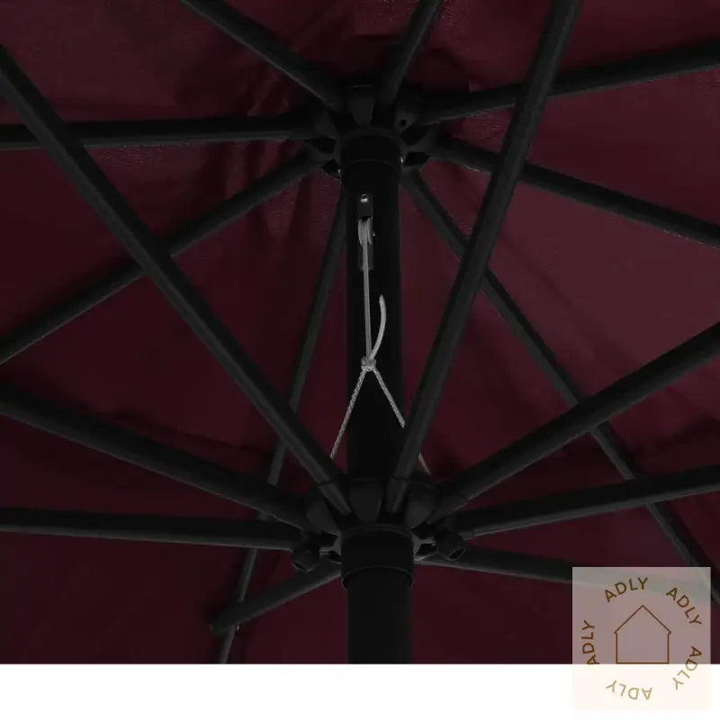 Farge: vinrødMaterialer: stoff (100% polyester), metallSamlet mål: 390 x 247 cm (diameter x H)Med luftventil og sveivemekanisme for enkel betjeningInkludert 8 spiler for optimal støtteMontering kreves: ja