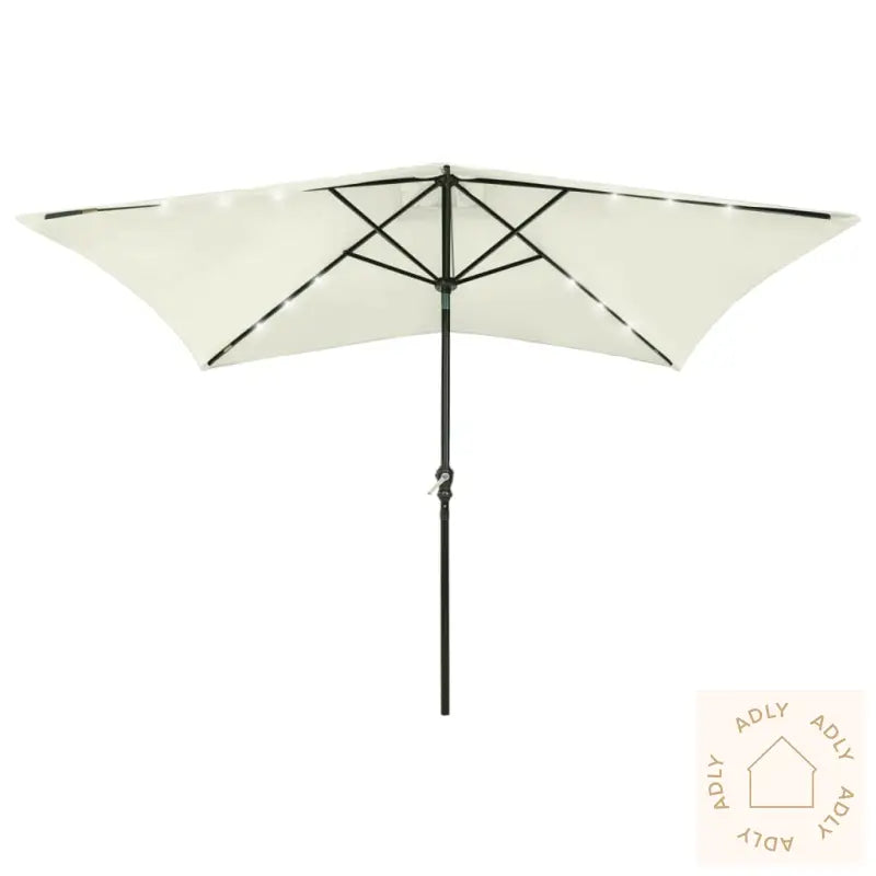 Farge: sandMaterialer: polyester; pulverlakkert stålSamlet mål: 200 x 300 x 247 cm (B x D x H)Diameter stang: 38 mmEffekt solpanel: 0,7 WInkluderer 18 lysdioder