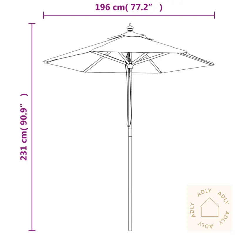 Slitesterkt materiale: Trekket er laget av UV-beskyttende og falmebestandig polyester, så den holder seg pen lenge og tåler daglig bruk ute. Polyester gjør at parasollen er enkel å holde ren, noe som gir deg mindre vedlikehold.Stabil ramme: Parasollen har en robust hardtrestang med slitesterke bambusspiler. Dette gir ikke bare solid støtte, men har også en naturlig, varm teakfinish som glir rett inn med andre møbler til hjemmet eller i hagen.Vindventilasjon: Det ekstra stoffet i toppen sørger for god ventilasjon, slik at både varme og vind slipper gjennom. Dette gjør at du kan bruke parasollen selv på varme dager eller når det blåser litt, uten at den blir ubehagelig.Enkel å betjene: Med det praktiske trinsesystemet med enkelthjul kan du enkelt slå opp og ned parasollen – raskt og smidig, akkurat som man ønsker seg fra solide utendørsmøbler.Merk: