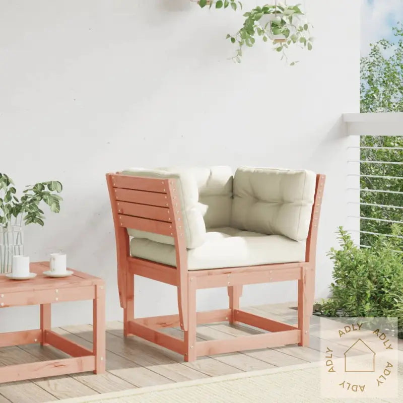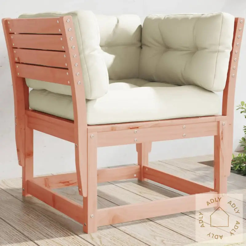 Heltre douglasgran er kjent for å være svært slitesterkt og egner seg derfor veldig godt til hagemøbler som skal stå ute gjennom hele sesongen. Dette robuste treverket tåler vær og vind, slik at sofaen holder seg pen i mange år.Sofaen har en ryggstøtte og tykke, myke puter som gir ekstra god komfort når du sitter lenge ute. Putene gir en lun og innbydende følelse – perfekt for avslapning.Lamelldesignet sørger for at vann renner vekk fra overflaten, slik at setet holder seg tørt og beskyttet mot råte. Det gjør denne sofaen ekstra praktisk hvis du bor et sted med mye nedbør.Takket være det modulære designet kan du tilpasse og ommøblere akkurat slik du ønsker. Kombiner sofaen med flere segmenter for å sette sammen større sittegrupper eller endre formasjonen etter behov. Dette gir fleksibilitet uansett hvordan uteområdet ditt ser ut, og gjør det enkelt å skape personlige løsninger som passer inn blant dine andre møbler til hjemmet.Godt å vite: