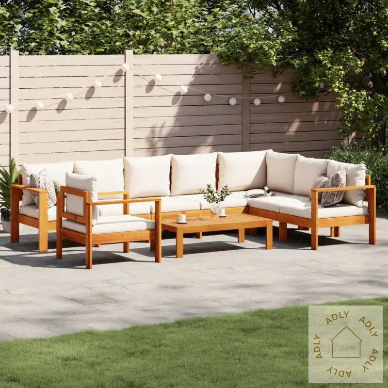 Langvarig materiale: Settet er laget av heltre akasie, et vakkert naturmateriale kjent for sin tetthet, styrke og holdbarhet. Oljebehandlet heltre akasie tåler vær og vind ekstra godt, og gir deg møbler som holder seg fine i mange sesonger.Praktisk og robust bord: Hagebordet har en solid bordplate i akasietre. Den er både slitesterk og enkel å holde ren – bare tørk over med en fuktig klut etter behov!God sitteopplevelse: Hele settet leveres med tykke, myke puter som gir ekstra støtte og komfort når du vil sitte lenge ute. Kremhvite trekk gir et lyst og friskt preg.Enkel rengjøring: Alle sete- og ryggputer har avtakbare trekk, så det er fort gjort å vaske dem når det trengs. Det gjør vedlikeholdet enkelt og gir deg mer tid til å nyte utemøblene.Modulært design: Møblene har et fleksibelt moduldesign, slik at du enkelt kan endre oppsettet og skape din egen ideelle utesone. Flytt delene rundt etter behov og tilpass til enhver anledning!Godt å vite: