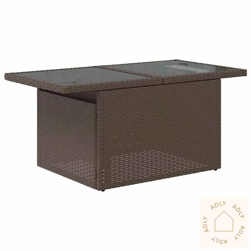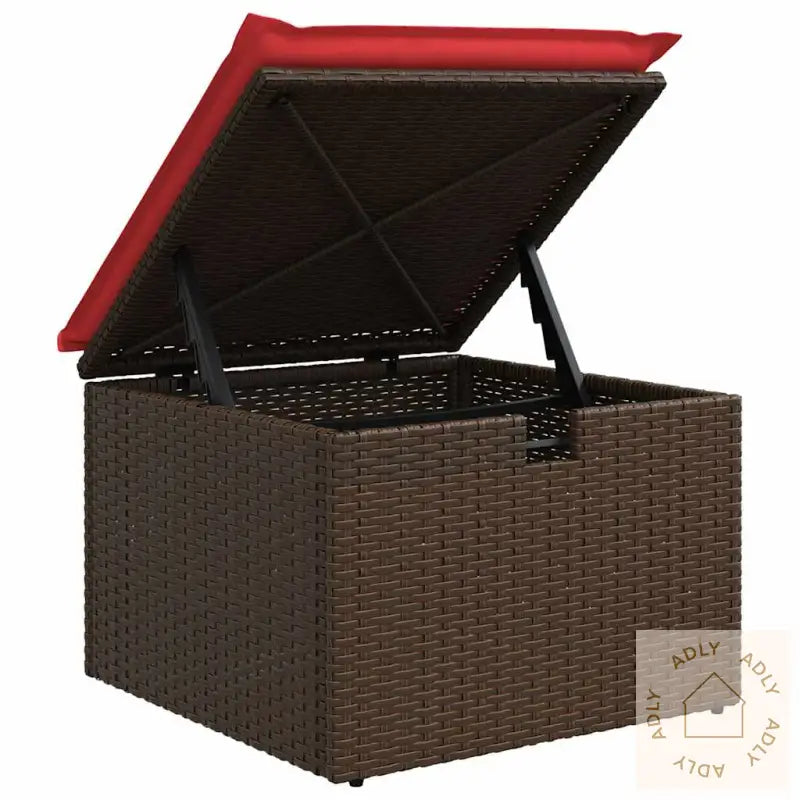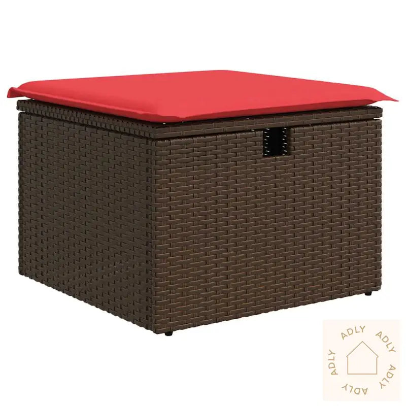 Maksimal belastning per sete: 110 kgUV-bestandig materiale som tåler sterk sol og holder fargen lengeJusterbare føtter i plast sørger for stabilitet på ujevnt underlagMontering kreves, men er enkelt med de medfølgende instruksjoneneMidtsete:Farge: brunMaterialer: PE-rotting og pulverlakkert stål – slitesterke og robuste kvalitetsmaterialerMål: 55 x 62 x 69 cm (B x D x H)Setemål: 55 x 55 cm (B x D)Setehøyde fra bakken (uten pute): 37 cmVanntett bag mål: 55 x 53 x 34 cm (L x B x H)Hjørnesete:Farge: brunBrun materialer: PE-rotting og pulverlakkert stålMål: 62 x 62 x 69 cm (B x D x H)Setemål: 55 x 55 cm (B x D)Setehøyde fra bakken (uten pute): 37 cmKrakk:Farge: brunMaterialer: PE-rotting og pulverlakkert stålMål: 55 x 55 x 37 cm (B x D x H)Bord:Farge: brunMaterialer: PE-rotting, pulverlakkert stål, herdet glassMål: 100 x 55 x 44/73 cm (L x B x H) – se pulverlakkert stål mål for robust konstruksjonPuter:Farge: rødMateriale trekk: stoff (100 % polyester) – komfortabelt og lettsteltFyll setepute: skumFyll ryggpute: bomullsfiberSetepute mål: 55 x 55 x 3 cm (B x D x T)Ryggpute mål: 55 x 45 x 13 cm (L x B x T)Leveransen inneholder:1 x hagebord i brun materialer2 x hjørneseter med oppbevaringsfunksjon og vanntett bag2 x midtseter med oppbevaringsfunksjon og vanntett bag1 x krakk med oppbevaringsfunksjon og vanntett pose5 x seteputer med avtakbart og vaskbart trekk6 x ryggputer for ekstra komfort