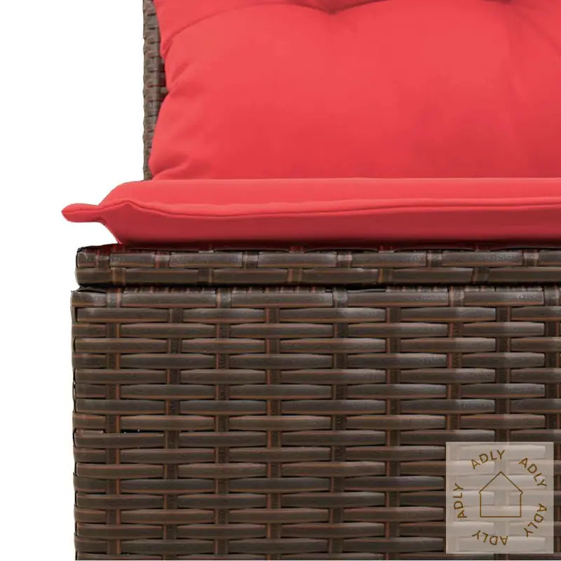 Slitesterkt materiale: Settet er laget av brun PE-rotting – et syntetisk materiale som både ligner og føles som naturlig rotting, men som er langt mer robust. PE-rotting krever lite vedlikehold, tåler vær, og holder seg pent over tid. Sammen med slitesterkt pulverlakkert stål får du solide utemøbler du kan ha glede av lenge.Praktisk oppbevaring med vanntett bag: Hvert sete har egen oppbevaringsplass under setet, komplett med en praktisk vanntett bag. Det gir deg perfekte muligheter til å lagre puter, leker eller annet tilbehør trygt og tørt. Posen festes enkelt med krok-og-løkke for at alt skal ligge stabilt og sikkert.Enkel rengjøring: Seteputene kommer med avtakbare og vaskbare trekk i slitesterkt stoff, noe som gjør det lett å holde hagesofasettet rent og fresht gjennom hele sesongen.Modulært design: Takket være det modulære oppsettet kan du tilpasse og flytte rundt på delene slik du ønsker det – enten du trenger en klassisk sofagruppe eller mer fleksible sitteplasser til mange gjester.Godt å vite: