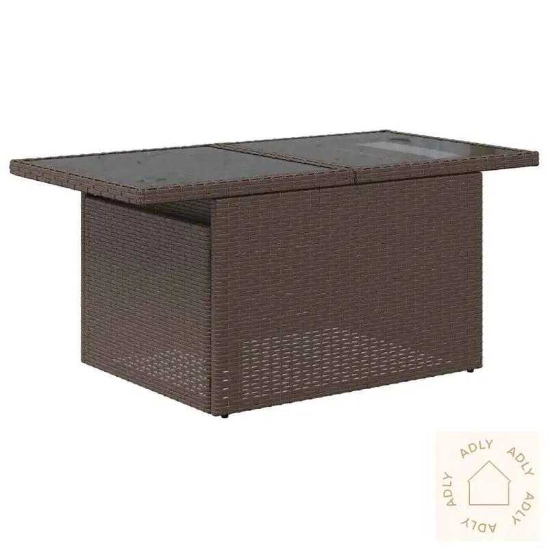 Slitesterkt materiale: Møblene er laget i PE-rotting (polyrotting), som er et robust og moderne materiale. Polyrotting kombinerer det naturlige utseendet til rotting med fordelen av å være lett, enkelt å holde rent og spesielt godt egnet for utendørs bruk takket være høy slitestyrke og ypperlige værbestandige egenskaper. Kombinasjonen av brun PE-rotting og pulverlakkert stål gir solid konstruksjon, lang levetid, og et stilfullt uttrykk.Vanntett bag og praktisk oppbevaring: Under hvert sete finner du smart oppbevaringsplass komplett med en vanntett bag. Denne funksjonen gjør det enklere å lagre puter, leker eller andre småting tørt og trygt, uansett værforhold. Den innvendige posen har toppdeksel og festes med krok-og-løkke for ekstra stabilitet—perfekt for enkelt å ta ut eller legge inn ting.Praktisk sidebord: Utemøblene har også et sammenleggbart sidebord med gassfjær, så du lett kan ha drikke, snacks eller mobiltelefon innen rekkevidde når du slapper av.Avtakbart og vaskbart trekk: Seteputene leveres med avtagbare trekk i polyesterstoff, noe som gjør vask og vedlikehold supersmidig. Disse marineblå trekkene sørger for at puteinnholdet holder seg pent lenger.Modulært design: Utesettet har et fleksibelt modulbasert design som gjør det lett å omorganisere og tilpasse møbeloppsettet som du vil. Det gir deg frihet til å lage akkurat den lounge-sonen du ønsker, uansett plass eller anledning.Godt å vite: