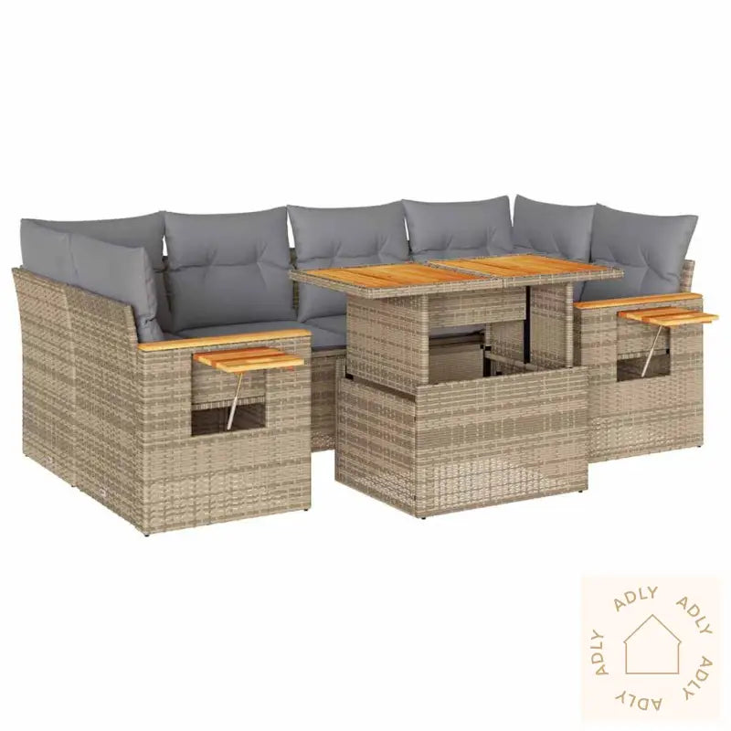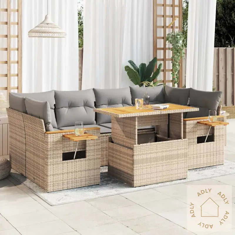 Vil du forlenge levetiden på dine utemøbler? Bruk et beskyttende, vanntett trekk når de ikke er i bruk, så holder de seg pene lenger.Maks. vektkapasitet per sete er 110 kg – solide rammer av pulverlakkert stål gir deg stabilitet og lang holdbarhet.UV-bestandig materiale – perfekt for solrike dager uten at fargen falmer.Justerbare føtter i plast for bedre stabilitet selv på ujevnt underlag.Montering kreves.Midtsete:Farge: beigeMaterialer: PE-rotting og pulverlakkert stålMål: 55 x 62 x 69 cm (B x D x H)Mål sete: 55 x 55 cm (B x D)Setehøyde fra bakken (uten pute): 37 cmHjørnesete:Farge: beigeMaterialer: PE-rotting og pulverlakkert stålMål: 62 x 62 x 69 cm (B x D x H)Mål sete: 55 x 55 cm (B x D)Setehøyde fra bakken (uten pute): 37 cmHjørnesete med armlener i akasietre:Farge: beigeMaterialer: PE-rotting, pulverlakkert stål og heltre akasie m/oljefinishMål: 62 x 62 x 69 cm (B x D x H)Mål sete: 55 x 55 cm (B x D)Setehøyde fra bakken (uten pute): 37 cmArmlenhøyde: 55 cmBredde armlene: 6 cmMål sidebord: 24,5 x 23,5 cm (L x B)Bord:Farge: beigeMaterialer: PE-rotting, pulverlakkert stål, heltre akasie med oljefinishMål: 100 x 55 x 44/73 cm (L x B x H)Pute:Farge: lysegråTrekk: 100% polyesterstoffFyll setepute: skumFyll ryggpute: bomullsfiberMål setepute: 55 x 55 x 3 cm (B x D x T)Mål ryggpute: 55 x 45 x 13 cm (L x B x T)Leveransen inneholder:1 x hagebord2 x hjørnesete med oppbevaringsplass og vanntett bag2 x hjørnesete med armlener i akasietre og vanntett bag2 x sentersete med oppbevaringsplass og vanntett bag6 x seteputer med avtagbart og vaskbart trekk8 x ryggputer