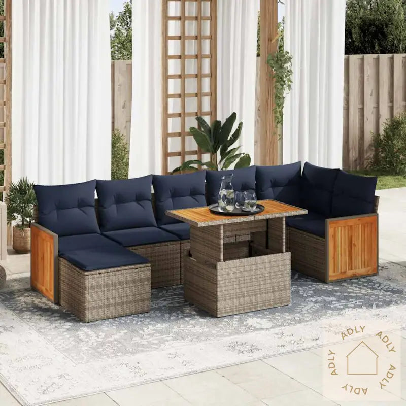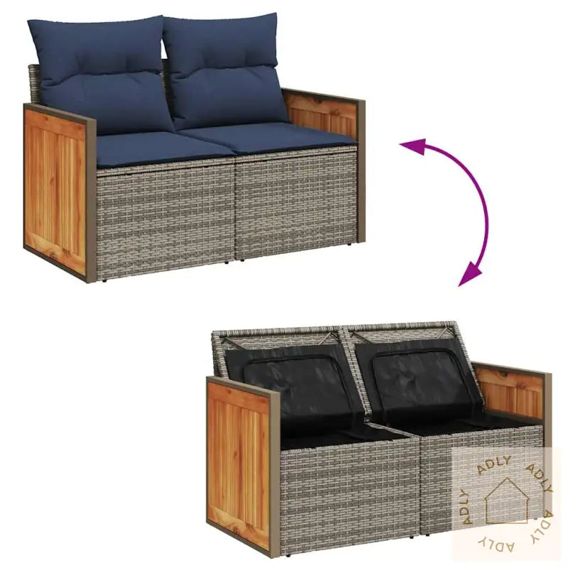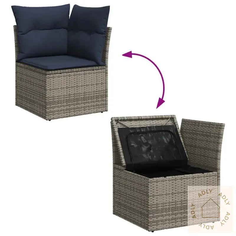 Slitesterkt materiale: Sofaen er laget av PE-rotting (polyrotting), et sterkt syntetisk materiale som ligner på naturlig rotting. Det er også kjent for å være værbestandig, UV-bestandig og spesielt enkelt å rengjøre – perfekt for helårig bruk utendørs. I kombinasjon med pulverlakkert stål får du et robust sett som tåler både fukt og daglig bruk.Oppbevaringsfunksjon med vanntett bag: Setene har smart lagringsplass under, komplett med en vanntett bag som gjør det lett å oppbevare puter, leker eller andre nødvendige ting. Innervesken har lokk og kan festes sikkert med krok-og-løkkefester, så innholdet holder seg tørt og trygt uansett værforhold.Avtakbart og vaskbart trekk: Seteputene leveres med avtagbare trekk, så du kan holde sittegruppen frisk og ren med enkel vask når det trengs. Dette gir ekstra brukervennlighet og sparer tid på vedlikehold.Modulært design: Med modulære deler bestemmer du selv hvordan sittegruppen skal settes sammen. Fleksibiliteten lar deg raskt tilpasse møblene etter anledningen eller plassen du har tilgjengelig.Godt å vite: