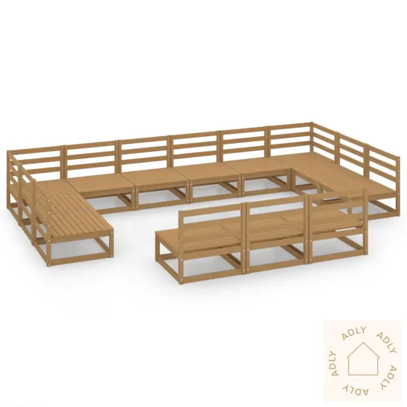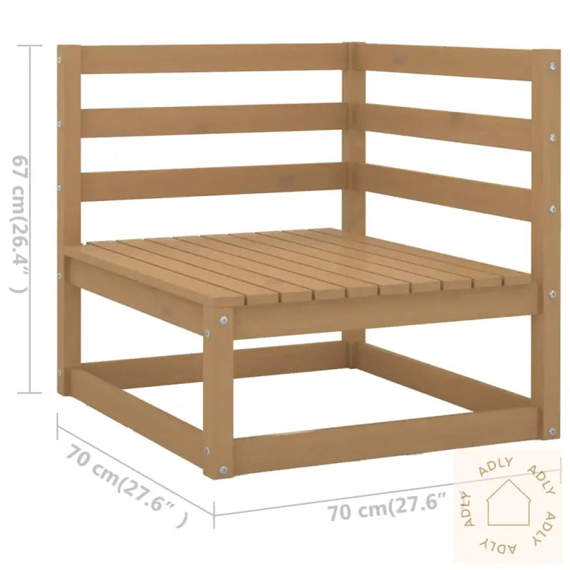 Farge: honningbrunMateriale: heltre furuMål midt-/hjørnesofa: 70 x 70 x 67 cm (B x D x H)Montering kreves: jaMaksimal lastekapasitet (per sete): 110 kgLeveransen inneholder:11 x midtsofaer2 x hjørnesofaer