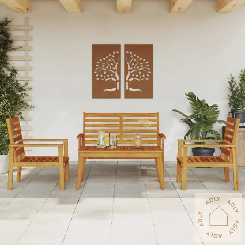 Hagemøblene er laget av heltre akasie, et slitesterkt og robust naturmateriale kjent for sin styrke og stabilitet. Akasietre har et vakkert og varmt fargespill i treverket sitt, og de unike årene gir hvert eneste møbel sitt eget uttrykk. Det passer derfor ekstra godt for deg som ønsker personlige og langvarige utemøbler.Med komfortable armlener og ryggstøtte får du en førsteklasses sitteopplevelse i dette hagesalongen, enten det er en rolig morgenkaffe eller hyggelige sammenkomster med venner.Hagebordet har en solid og stabil bordplate av oljebehandlet heltre akasie som tåler daglig bruk ute, samtidig som den er lett å holde ren. Det er bare å tørke over med en fuktig klut for å fjerne smuss og flekker.Dette fleksible utemøbelsettet passer inn på de aller fleste uteplasser: verandaen, terrassen, bakgården, balkongen eller plenen – mulighetene er mange!Godt å vite: