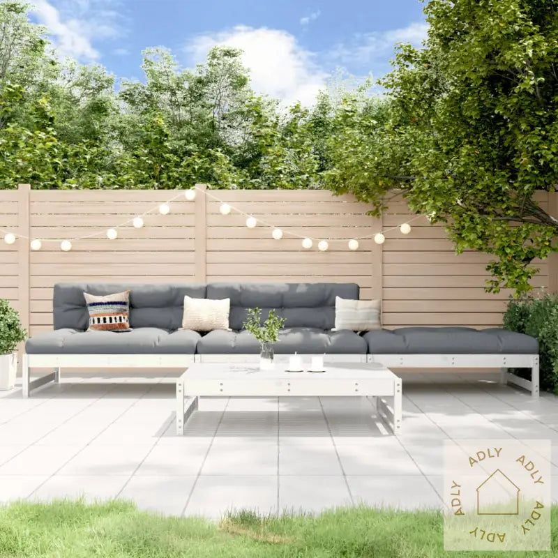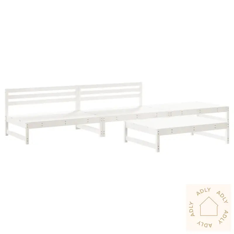 Puter er ikke inkludert, men det gir deg friheten til å velge akkurat den stilen og komforten du ønsker.For å sikre at hagemøblene dine holder seg like fine lenge, anbefales det å bruke et vanntett trekk når de ikke brukes.Farge: HvitMateriale: Heltre furuMateriale lameller: KryssfinerMål hagebenk: 120 x 84 x 70 cm (L x B x H)Høyde sete fra bakken: 30 cmMål salongbord/fotskammel: 120 x 84 x 30 cm (L x B x H)Maksimal lastekapasitet per sete: 110 kgMontering kreves, noe som gjør det enkelt å tilpasse møblene til din plassering i hagen.Leveransen inneholder:2 x hagebenker2 x salongbord/fotskamler