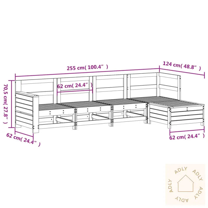 For å bevare utseende og levetid på utemøblene anbefaler vi å bruke et vanntett trekk når settet ikke er i bruk.Materiale: heltre douglasgran (ubehandlet)Materiale lameller: kryssfinerMaksimal lastekapasitet (per sete): 110 kgPute inkludert: neiMontering kreves: jaHjørnesete:Mål: 62 x 62 x 70,5 cm (B x D x H)Mål sete: 60 x 60 cm (B x D)Høyde sete fra bakken: 32 cmMidtsete:Mål: 62 x 62 x 70,5 cm (B x D x H)Mål sete: 60 x 60 cm (B x D)Høyde sete fra bakken: 32 cmSofa med armlener:Mål: 69 x 62 x 70,5 cm (B x D x H)Mål sete: 60 x 60 cm (B x D)Høyde sete fra bakken: 32 cmHøyde armlene fra bakken: 52 cmMål sidebord: 58 x 25 cm (L x B)Mål fotskammel: 62 x 62 x 32 cm (B x D x H)Leveransen inneholder:1 x Hjørnesete 2 x midtsofaer 1 x sofa med armlener 1 x fotskammel