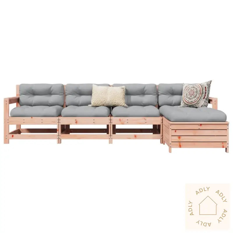 For å holde utemøblene dine fine over tid, anbefaler vi å bruke et vanntett trekk når de ikke er i bruk.Materiale: heltre douglasgran (ubehandlet)Materiale lameller: kryssfinerMaksimal lastekapasitet (per sete): 110 kgPute inkludert: neiMontering kreves: jaHjørnesete:Mål: 66 x 62 x 70,5 cm (B x D x H)Mål sete: 60 x 60 cm (B x D)Høyde sete fra bakken: 32 cmMidtsete:Mål: 62 x 62 x 70,5 cm (B x D x H)Mål sete: 60 x 60 cm (B x D)Høyde sete fra bakken: 32 cmMål fotskammel: 62 x 62 x 32 cm (B x D x H)Leveransen inneholder:2 x hjørneseter 2 x midtsofaer 1 x fotskammel