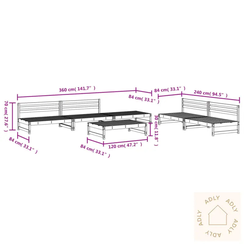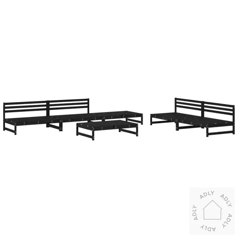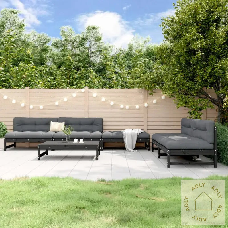 Settet leveres uten puter, slik at du selv kan velge puter som passer til din stil og komfort.For å ta best mulig vare på hagemøblene anbefaler vi å bruke et vanntett trekk ved dårlig vær. Slik holder heltre furu seg vakkert lenge.Farge: svartMateriale: heltre furuMateriale lameller: kryssfinerMål midtsofa: 120 x 84 x 70 cm (L x B x H)Mål hagefotskammel/salongbord: 120 x 84 x 30 cm (L x B x H)Maksimal bæreevne per sete: 110 kgMontering krevesLeveransen inneholder:4 x midtsofaer2 x hagefotskammel/sofabord