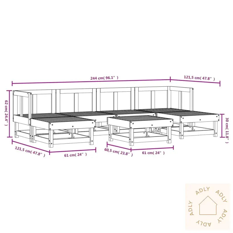Puter følger ikke med, så her kan du selv velge stilen og komplementere med egne favorittfarger.For å holde hagemøblene flotte lenge anbefaler vi å bruke et vanntett trekk ved dårlig vær eller når de ikke er i bruk.Materiale: heltre furu (ubehandlet)Materiale lameller: kryssfinerMål hjørnesofa: 61 x 61 x 62 cm (L x B x H)Mål midtsofa: 61 x 61 x 62 cm (L x B x H)Mål fotskammel/salongbord: 61 x 60,5 x 30 cm (L x B x H)Maksimal lastekapasitet (per sete): 110 kgMontering kreves: jaLeveransen inneholder:2 x hjørnesofaer2 x midtsofaer3 x hagefotskammel/sofabord
