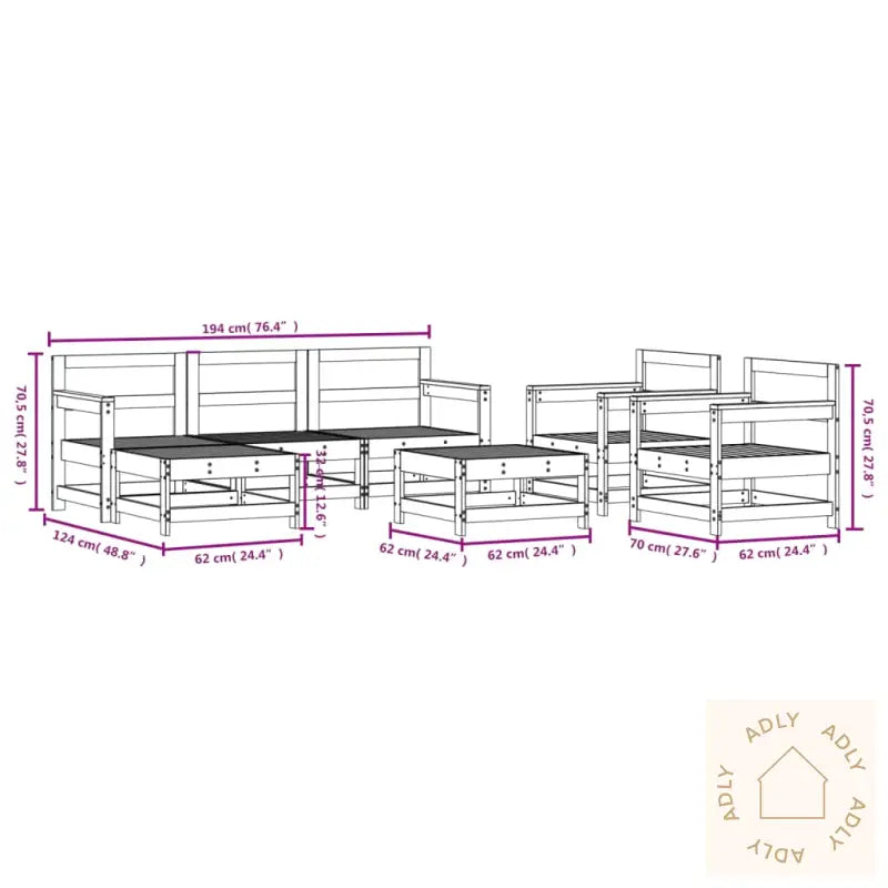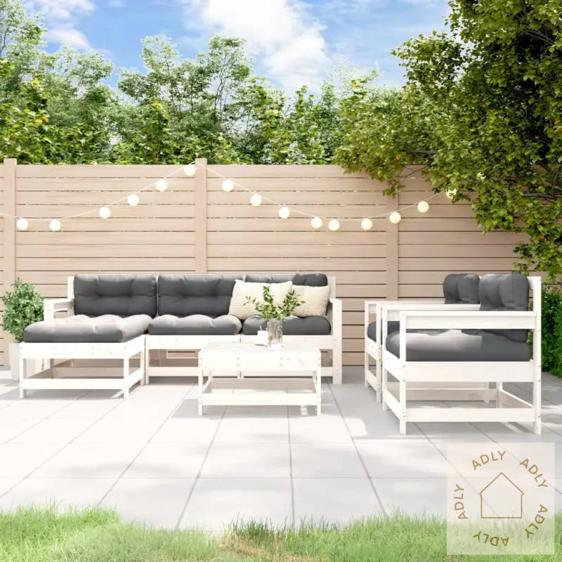 For å bevare utseendet til hagemøblene dine anbefaler vi å bruke et vanntett trekk når de ikke er i bruk, så holder de seg pene enda lenger.Putene på bildene følger ikke med i leveransen, så her har du muligheten til å velge puter som passer din stil.Farge: Hvit – lett å kombinere med både fargerike puter og andre møbler til hjemmet eller uterommet.Materiale: heltre furu for hovedrammen, med lameller i slitesterk kryssfiner.Mål hjørnesofa: 66 x 62 x 70,5 cm (B x D x H)Mål midtsofa: 62 x 62 x 70,5 cm (B x D x H)Mål hagelenestol: 70 x 62 x 70,5 cm (B x D x H)Mål fotskammel/salongbord: 62 x 62 x 32 cm (B x D x H)Maksimal lastekapasitet per sete: 110 kgDu må montere produktet selv, men alle deler og enkle instruksjoner følger med.Du får med alt dette i pakken:2 x hjørnesofaer1 x midtsofa2 x hagelenestoler2 x hagefotskammel/sofabord