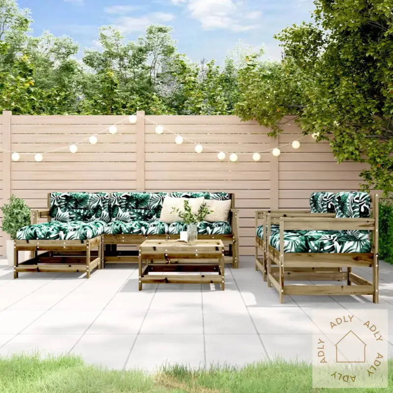 Impregnert treverk: Hele settet er laget av trykkimpregnert heltre furu, et naturlig og solid materiale kjent for sin slitestyrke. Furuens rette årringer og karakteristiske kvister gir hvert møbel en unik sjarm og et rustikt, nordisk preg. Impregneringen gjennom autoklav-prosess beskytter treet effektivt mot råte og værslitasje, noe som gir deg hagemøbler du kan ha glede av i mange år.Robust og stabil ramme: Trerammene sørger for solid konstruksjon og styrke, slik at dette salongsettet tåler daglig bruk utendørs – enten du bruker det til hverdags eller når du samler venner til grillfest.Fleksibelt moduldesign: Settet har en modulær oppbygging som gjør at du enkelt kan flytte om på delene, tilpasse etter behov og kombinere det med flere moduler fra nettbutikken for å lage den løsningen som passer perfekt hos deg. Skap en personlig loungestil eller en praktisk sittegruppe med våre møbler til hjemmet.Godt å vite: