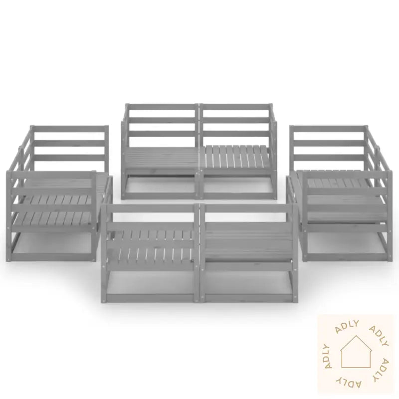 Farge: gråMateriale: heltre furuMål hjørnesofa (hver): 70 x 70 x 67 cm (B x D x H)Montering kreves: jaLeveransen inneholder:8 x hjørnesofaer