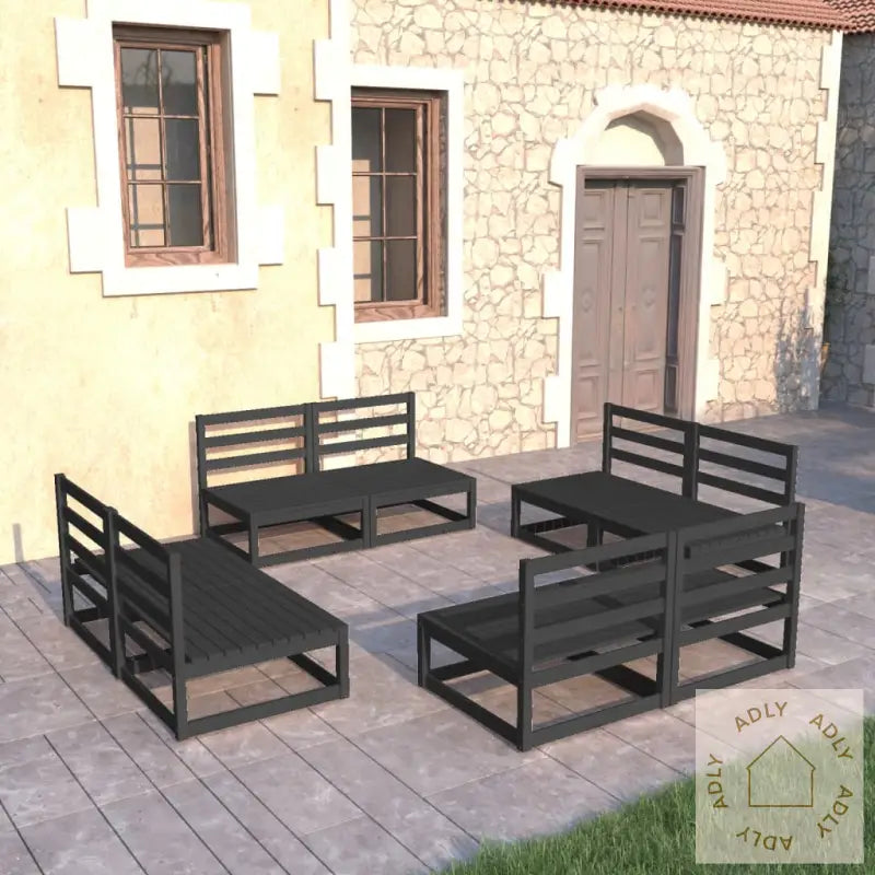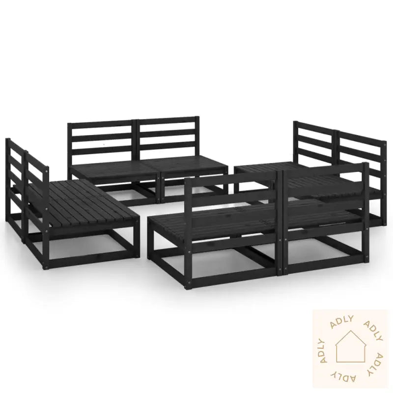 Farge: svartMateriale: heltre furuMål midtsofa (hver): 70 x 70 x 67 cm (B x D x H)Montering kreves: jaLeveransen inneholder:8 x midtsofaer