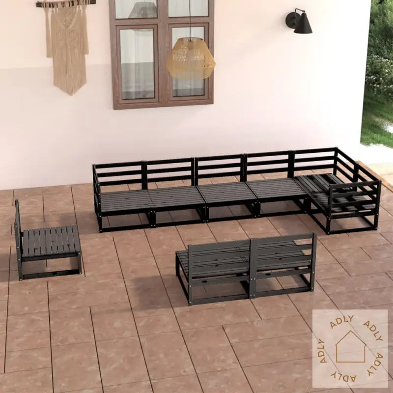 Farge: svartMateriale: heltre furuMål midt-/hjørnesofa (hver): 70 x 70 x 67 cm (B x D x H)Montering kreves: jaLeveransen inneholder:6 x midtsofaer3 x hjørnesofaer