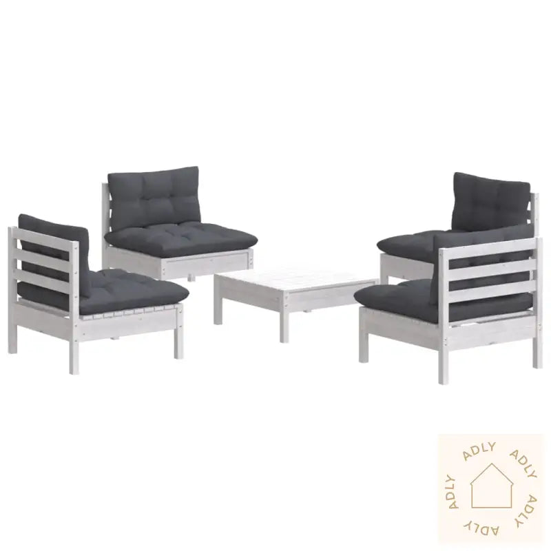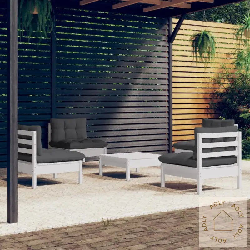 Farge: HvitFarge pute: AntrasittMaterialer: Heltre furu, stoff (100% polyester)Mål: 63,5 x 63,5 x 62,5 cm (B x D x H)Mål bord/fotskammel: 63,5 x 63,5 x 28,5 cm (B x D x H)Mål setepute: 60 x 60 x 5 cm (L x B x T)Mål ryggpute: 60 x 32 x 5 cm (L x B x T)Montering kreves: JaMaksimal lastekapasitet (per sete): 110 kgLeveransen inneholder:4 x midtsofaer2 x fotskamler/bord5 x seteputer4 x ryggputer
