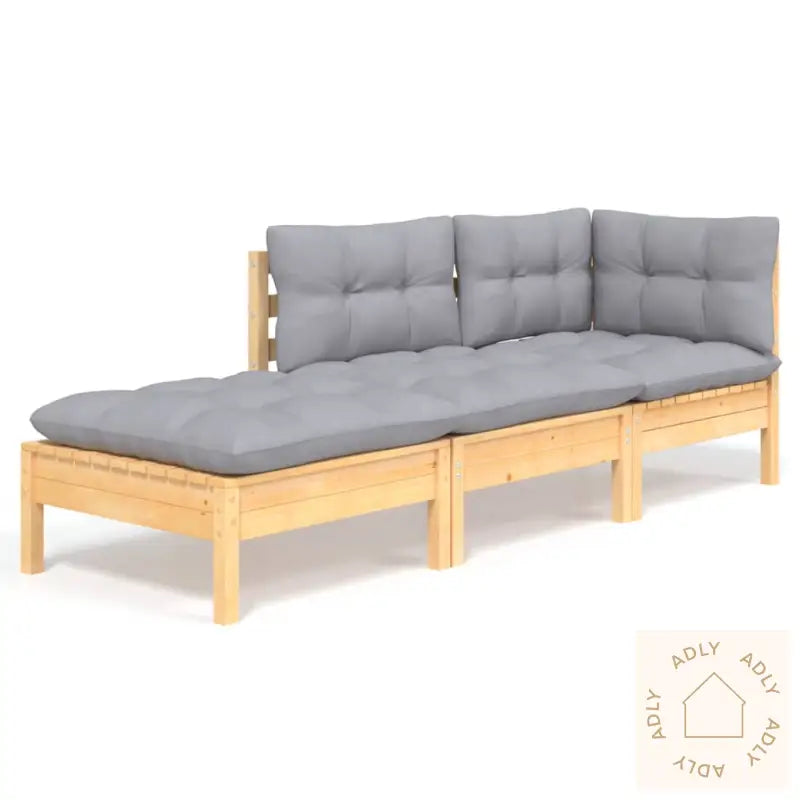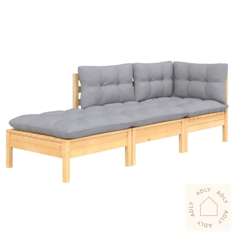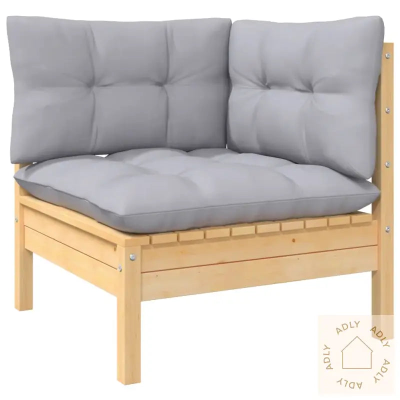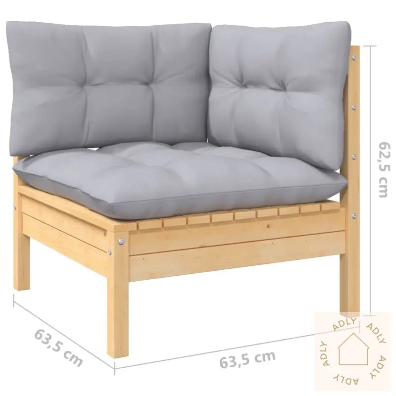 Farge pute: gråMaterialer: heltre furu, stoff (100% polyester)Mål: 63,5 x 63,5 x 62,5 cm (B x D x H)Mål: 63,5 x 63,5 x 62,5 cm (B x D x H)Fotskammelens dimensjoner: 63,5 x 63,5 x 28,5 cm (L x B x H)Mål setepute: 60 x 60 x 5 cm (L x B x T)Mål ryggpute: 60 x 32 x 5 cm (L x B x T)Montering kreves: jaMaksimal lastekapasitet (per sete): 110 kgLeveransen inneholder:1 x hjørnesofa1 x midtsofa1 x fotskammel3 x seteputer7 x ryggputer