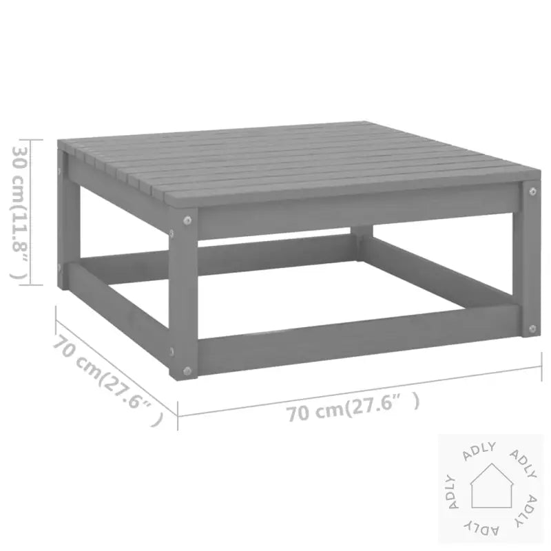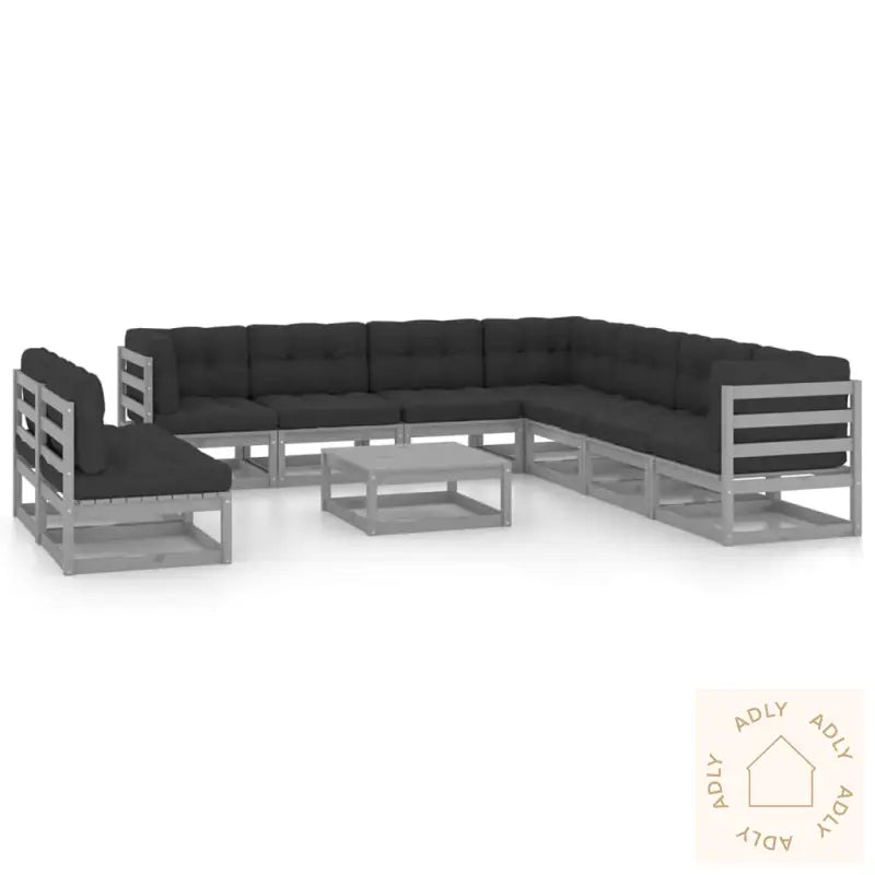 Farge sofa: gråFarge pute: antrasittMaterialer: heltre furu, stoff (100% polyester)Mål hjørnesofa: 70 x 70 x 67 cm (B x D x H)Mål midtsofa: 70 x 70 x 67 cm (B x D x H)Mål bord: 70 x 70 x 30 cm (B x D x H)Mål setepute: 70 x 70 x 8 cm (L x B x T)Mål ryggpute: 70 x 40 x 8 cm (L x B x T)Maksimal lastekapasitet (per sete): 110 kgMontering kreves: jaLeveransen inneholder:3 x hjørnesofaer6 x midtsofaer1 x bord9 x seteputer12 x ryggpute