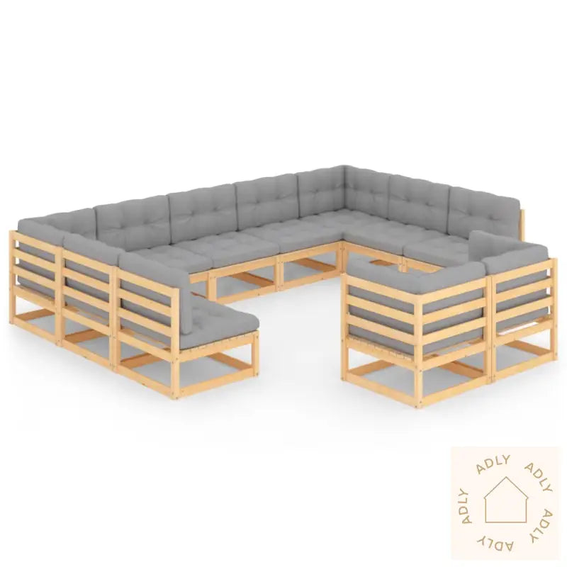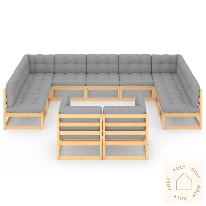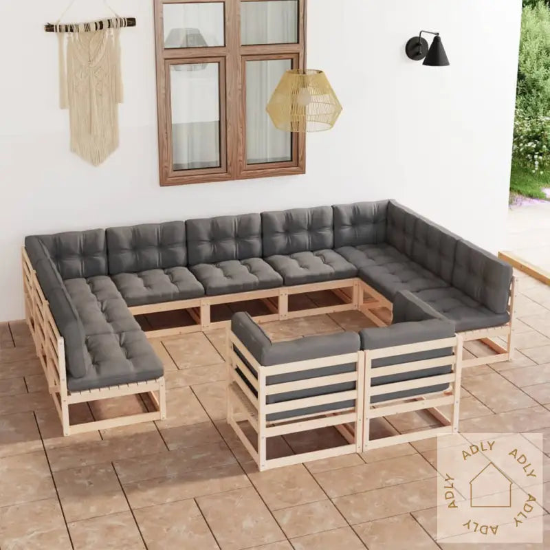 Farge pute: gråMaterialer: heltre furu (ubehandlet), stoff (100 % polyester)Mål hjørnesofa: 70 x 70 x 67 cm (B x D x H)Mål midtsofa: 70 x 70 x 67 cm (B x D x H)Mål setepute: 70 x 70 x 8 cm (L x B x T)Mål ryggpute: 70 x 40 x 8 cm (L x B x T)Montering kreves: jaMaksimal lastekapasitet (per sete): 110 kgLeveransen inneholder:4 x hjørnesofaer7 x midtsofaer11 x seteputer15 x ryggputer