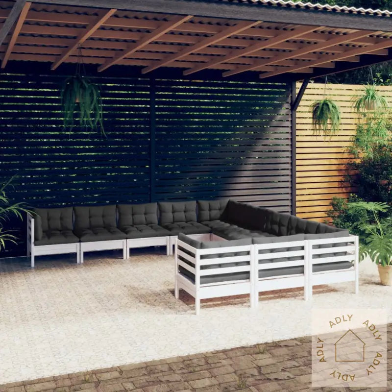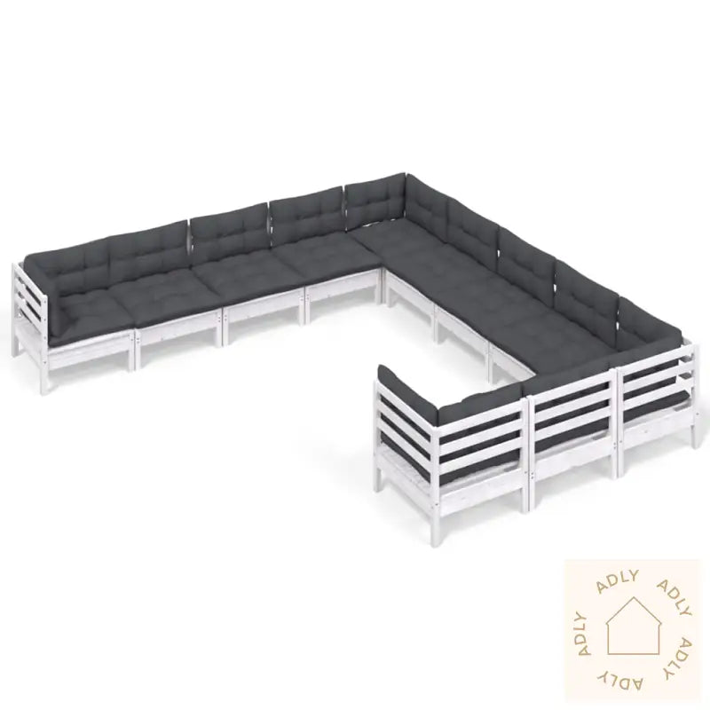 Farge: hvitFarge pute: antrasittMaterialer: heltre furu, stoff (100% polyester)Mål hjørne/mellomsofa: 63,5 x 63,5 x 62,5 cm (B x D x H)Mål setepute: 60 x 60 x 5 cm (L x B x T)Mål rygg-/sidepute: 60 x 32 x 5 cm (L x B x T)Maksimal lastekapasitet (per sete): 110 kgMontering kreves: jaLeveransen inneholder:4 x hjørnesofaer7 x midtsofaer11 x seteputer15 x rygg-/sideputer