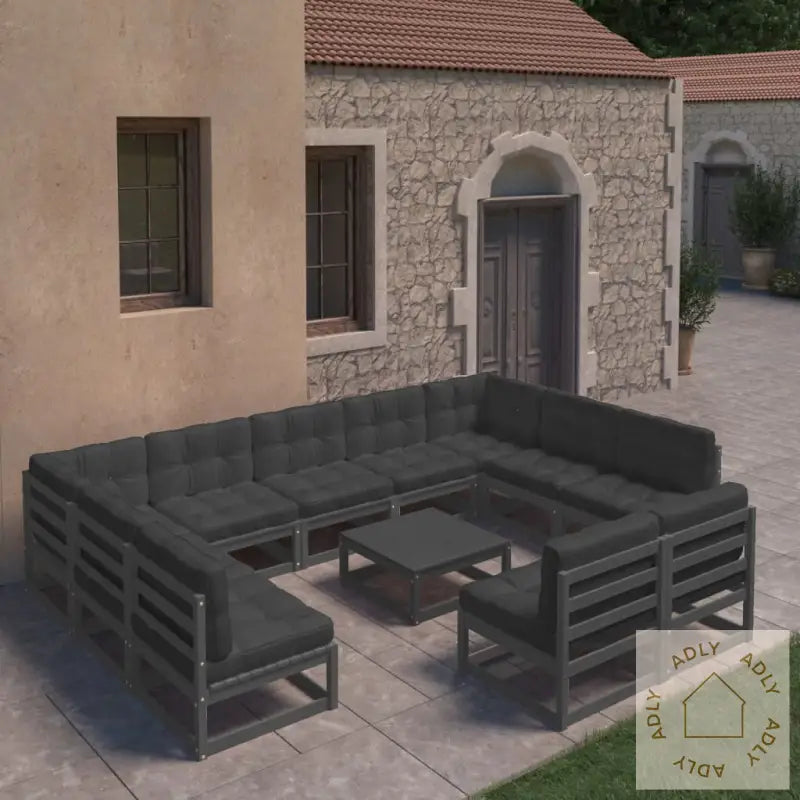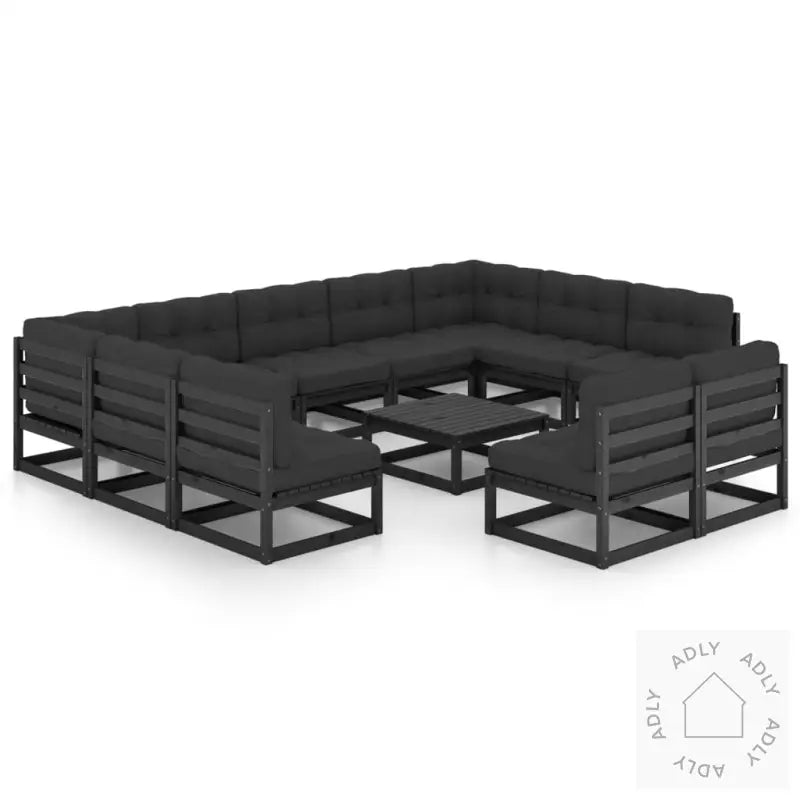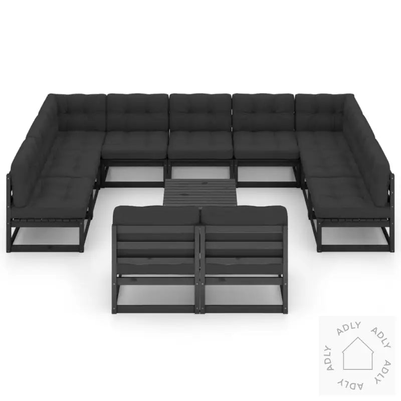 Farge sofa: svartFarge pute: antrasittMaterialer: heltre furu, stoff (100% polyester)Mål hjørnesofa: 70 x 70 x 67 cm (B x D x H)Mål midtsofa: 70 x 70 x 67 cm (B x D x H)Mål bord: 70 x 70 x 30 cm (B x D x H)Mål setepute: 70 x 70 x 8 cm (L x B x T)Mål ryggpute: 70 x 40 x 8 cm (L x B x T)Maksimal lastekapasitet (per sete): 110 kgMontering kreves: jaLeveransen inneholder:2 x hjørnesofaer9 x midtsofaer1 x bord11 x seteputer13 x ryggputer
