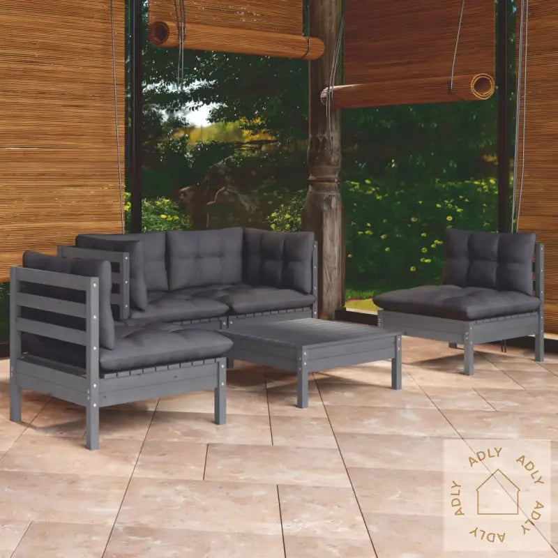 Farge: gråFarge pute: antrasittMaterialer: heltre furu, stoff (100% polyester)Mål: 63,5 x 63,5 x 62,5 cm (B x D x H)Mål bord/fotskammel: 63,5 x 63,5 x 28,5 cm (B x D x H)Mål setepute: 60 x 60 x 5 cm (L x B x T)Mål ryggpute: 60 x 32 x 5 cm (L x B x T)Montering kreves: jaMaksimal lastekapasitet (per sete): 110 kgLeveransen inneholder:2 x hjørnesofaer2 x midtsofaer2 x fotskamler/bord5 x seteputer6 x ryggputer