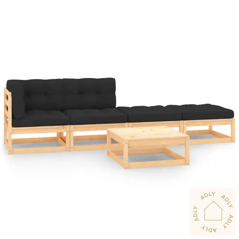 Dette hagesalongsettet i heltre furu er det perfekte valget for deg som vil slappe av utendørs, kanskje ta en liten hvil i solen eller nyte hyggelige samtaler med venner og familie. Hagemøblene er produsert i solid, ubehandlet heltre furu, kjent for sin robusthet og naturlige sjarm, noe som gir både styrke og et delikat, rustikt preg til uteplassen. Den stabile konstruksjonen tåler daglig bruk og krever minimalt med vedlikehold, noe som gjør dem ekstra praktiske i en travel hverdag. Ekstra tykke og komfortable seteputer i antrasittfarget stoff sørger for god sittekomfort hele dagen, enten du bruker settet til frokost, kveldsprat eller bare en pause fra hverdagen.
