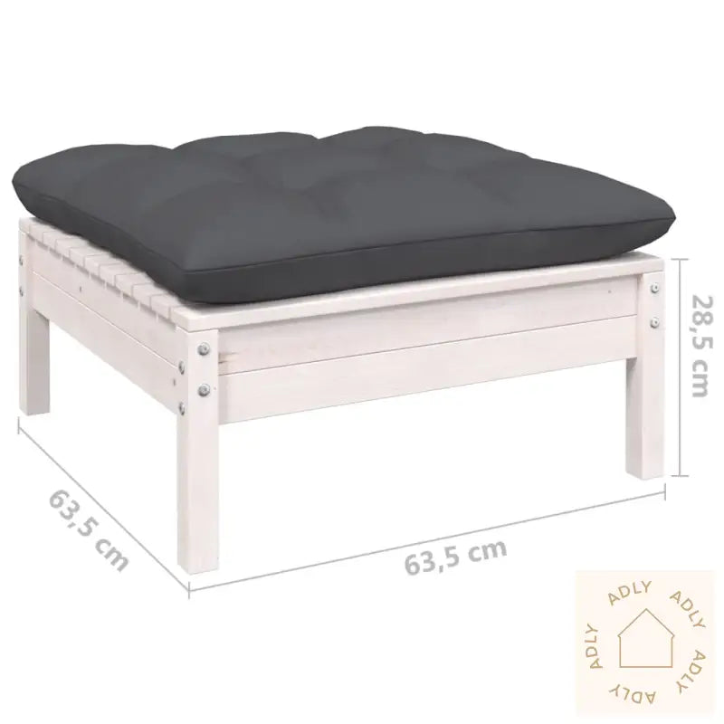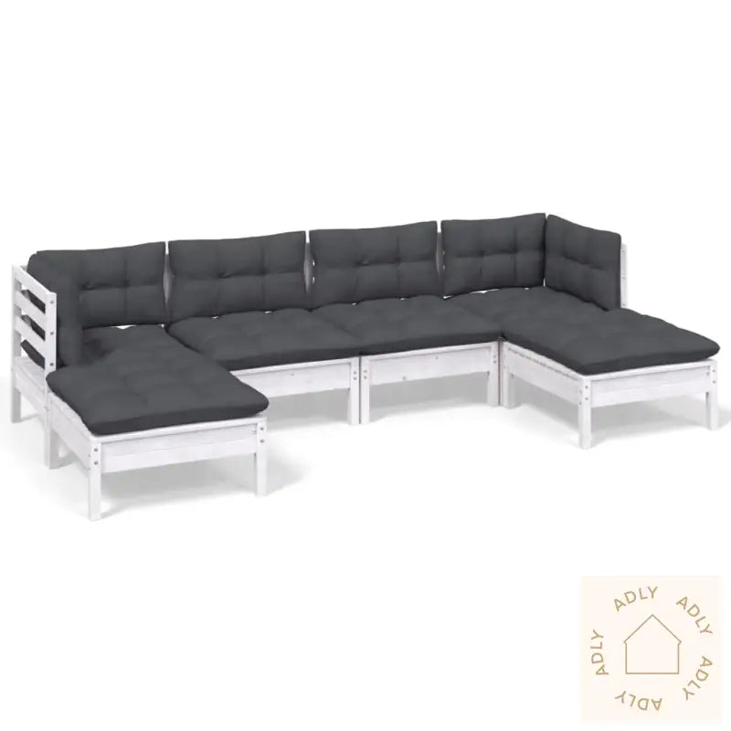 Farge: HvitFarge pute: AntrasittMaterialer: heltre furu, stoff (100% polyester)Mål hjørne/mellomsofa: 63,5 x 63,5 x 62,5 cm (B x D x H)Mål bord/fotskammel: 63,5 x 63,5 x 28,5 cm (B x D x H)Mål setepute: 60 x 60 x 5 cm (L x B x T)Mål rygg-/sidepute: 60 x 32 x 5 cm (L x B x T)Maksimal lastekapasitet (per sete): 110 kgMontering kreves: jaLeveransen inneholder:2 x hjørnesofaer2 x midtsofaer2 x fotskammel/bord6 x seteputer6 x rygg-/sideputer