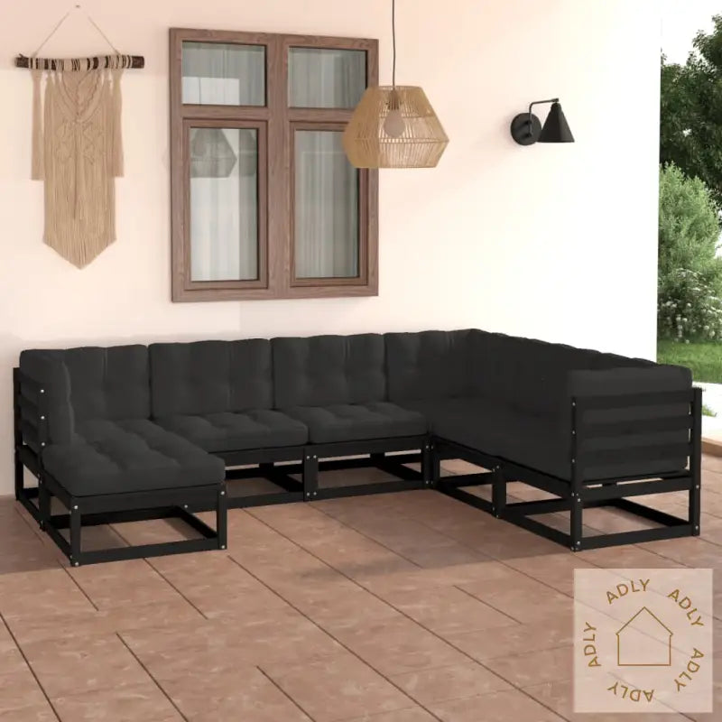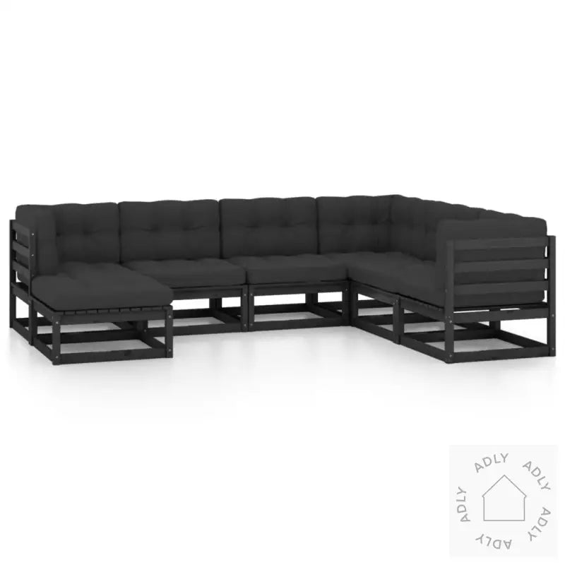Farge: svartFarge pute: antrasittMaterialer: heltre furu, stoff (100% polyester)Mål midt-/hjørnesofa: 70 x 70 x 67 cm (B x D x H)Mål fotskammel: 70 x 70 x 30 cm (B x D x H)Mål setepute: 70 x 70 x 8 cm (L x B x T)Mål rygg-/sidepute: 70 x 40 x 8 cm (L x B x T)Maksimal lastekapasitet (per sete): 110 kgMontering kreves: jaLeveransen inneholder:3 x midtsofaer3 x hjørnesofaer1 x fotskammel7 x seteputer9 x rygg-/sideputer