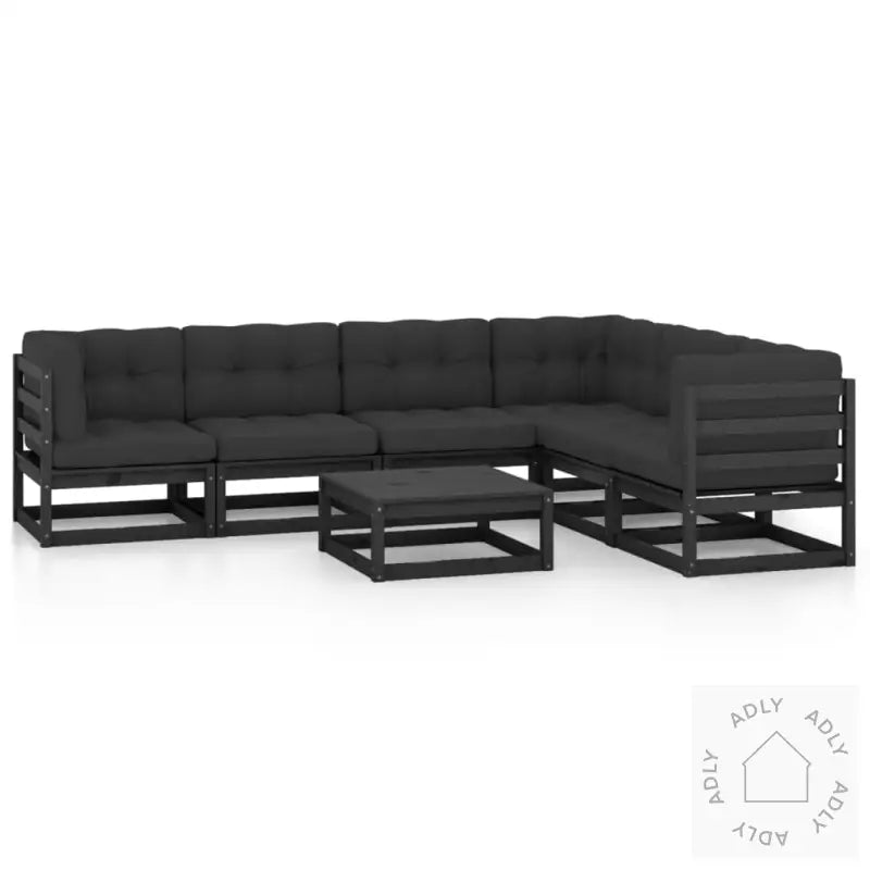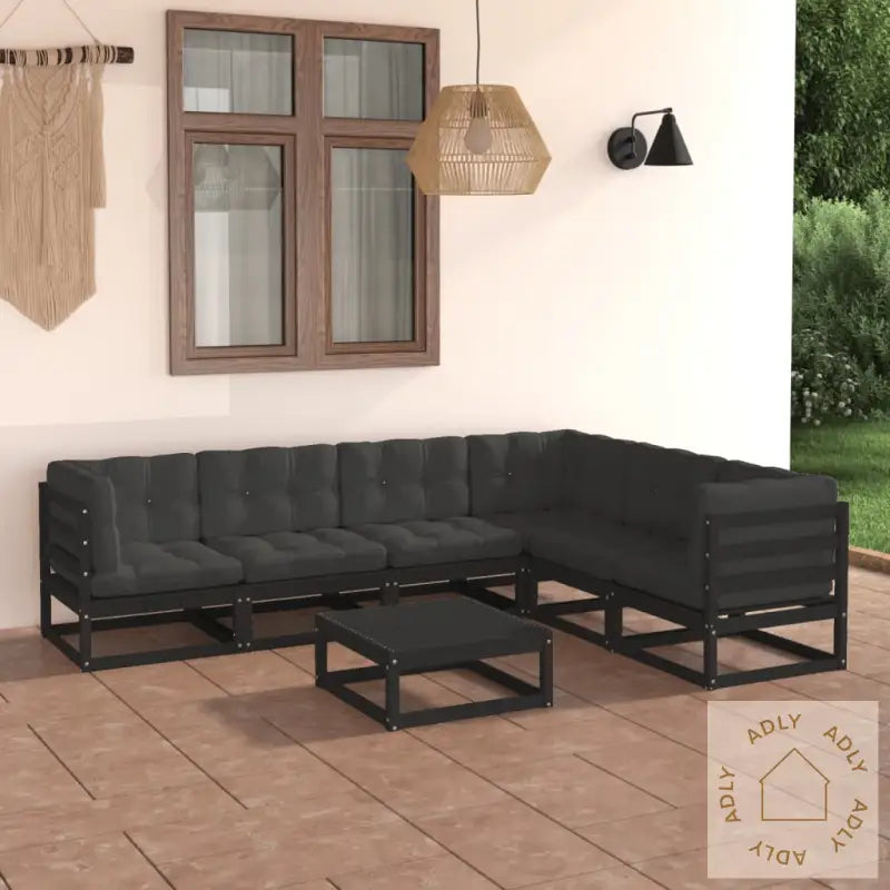 Farge sofa: svartFarge pute: antrasittMaterialer: heltre furu, stoff (100% polyester)Mål hjørnesofa: 70 x 70 x 67 cm (B x D x H)Mål midtsofa: 70 x 70 x 67 cm (B x D x H)Mål bord: 70 x 70 x 30 cm (B x D x H)Mål setepute: 70 x 70 x 8 cm (L x B x T)Mål ryggpute: 70 x 40 x 8 cm (L x B x T)Maksimal lastekapasitet (per sete): 110 kgMontering kreves: jaLeveransen inneholder:3 x hjørnesofaer3 x midtsofaer1 x bord6 x seteputer9 x ryggputer