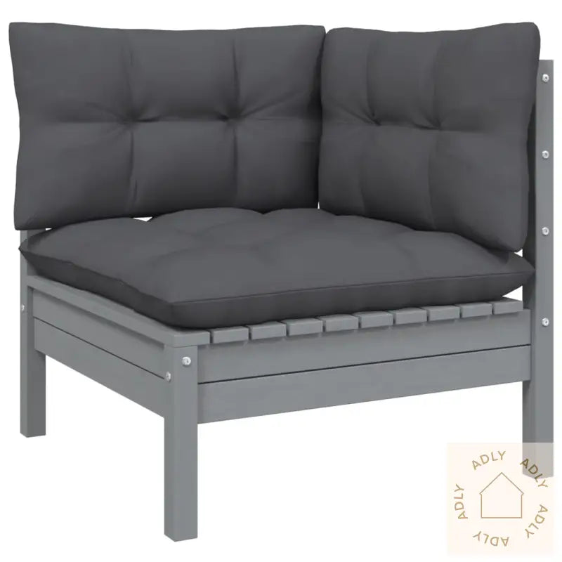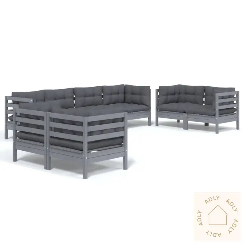Farge: gråFarge pute: antrasittMaterialer: heltre furu, stoff (100% polyester)Mål: 63,5 x 63,5 x 62,5 cm (B x D x H)Mål: 63,5 x 63,5 x 62,5 cm (B x D x H)Mål setepute: 60 x 60 x 5 cm (L x B x T)Mål ryggpute: 60 x 32 x 5 cm (L x B x T)Montering kreves: jaMaksimal lastekapasitet (per sete): 110 kgLeveransen inneholder:6 x hjørnesofaer2 x midtsofaer8 x seteputer14 x ryggputer