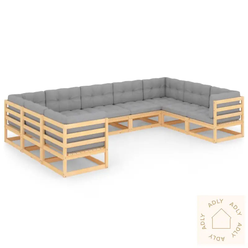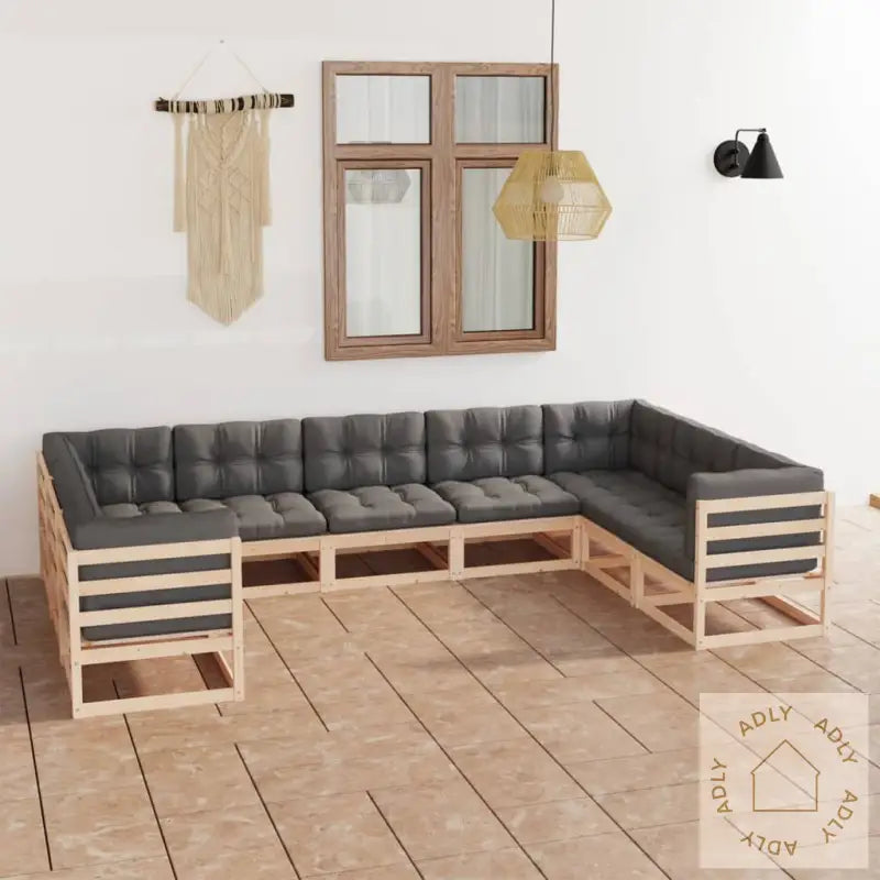 Farge pute: gråMaterialer: heltre furu (ubehandlet), stoff (100 % polyester)Mål hjørnesofa: 70 x 70 x 67 cm (B x D x H)Mål midtsofa: 70 x 70 x 67 cm (B x D x H)Mål setepute: 70 x 70 x 8 cm (L x B x T)Mål ryggpute: 70 x 40 x 8 cm (L x B x T)Montering kreves: jaMaksimal lastekapasitet (per sete): 110 kgLeveransen inneholder:4 x hjørnesofaer5 x midtsofaer9 x seteputer13 x ryggputer