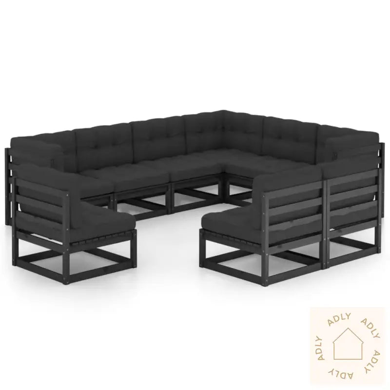 Farge sofa: svartFarge pute: antrasittMaterialer: heltre furu, stoff (100% polyester)Mål hjørnesofa: 70 x 70 x 67 cm (B x D x H)Mål midtsofa: 70 x 70 x 67 cm (B x D x H)Mål setepute: 70 x 70 x 8 cm (L x B x T)Mål ryggpute: 70 x 40 x 8 cm (L x B x T)Montering kreves: jaLeveransen inneholder:3 x hjørnesofaer6 x midtsofaer9 x seteputer12 x ryggpute