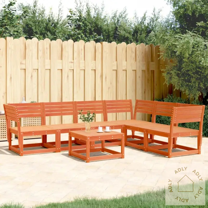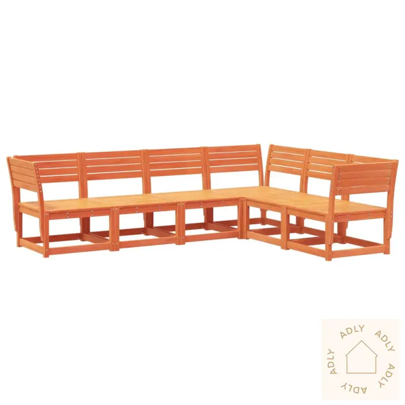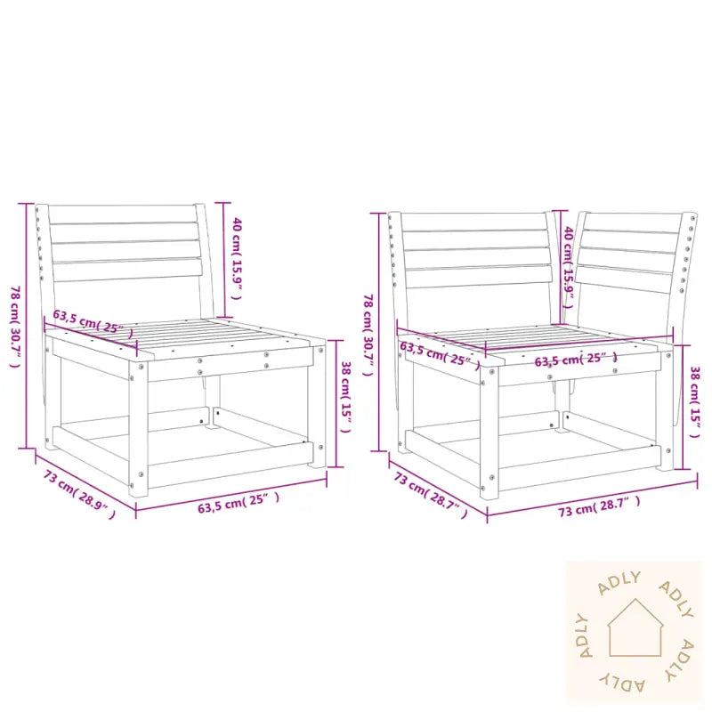 For å bevare møblenes utseende og kvalitet over tid, anbefaler vi å bruke et vanntett trekk når de ikke er i bruk.Maksimal lastekapasitet (per sete): 110 kgMontering kreves: jaSofa uten armlener:Farge: voksbrunMateriale: heltre furuMål: 63,5 x 73 x 78 cm (B x D x H)Mål sete: 63,5 x 63,5 cm (B x D)Høyde ryggstøtte: 40 cmHøyde sete fra bakken: 38 cmHjørnesofa:Farge: voksbrunMateriale: heltre furuMål: 73 x 73 x 78 cm (B x D x H)Høyde sete fra bakken: 38 cmMål sete: 63,5 x 63,5 cm (B x D)Leveransen inneholder:3 x hjørnesofaer3 x sofaer uten armlener