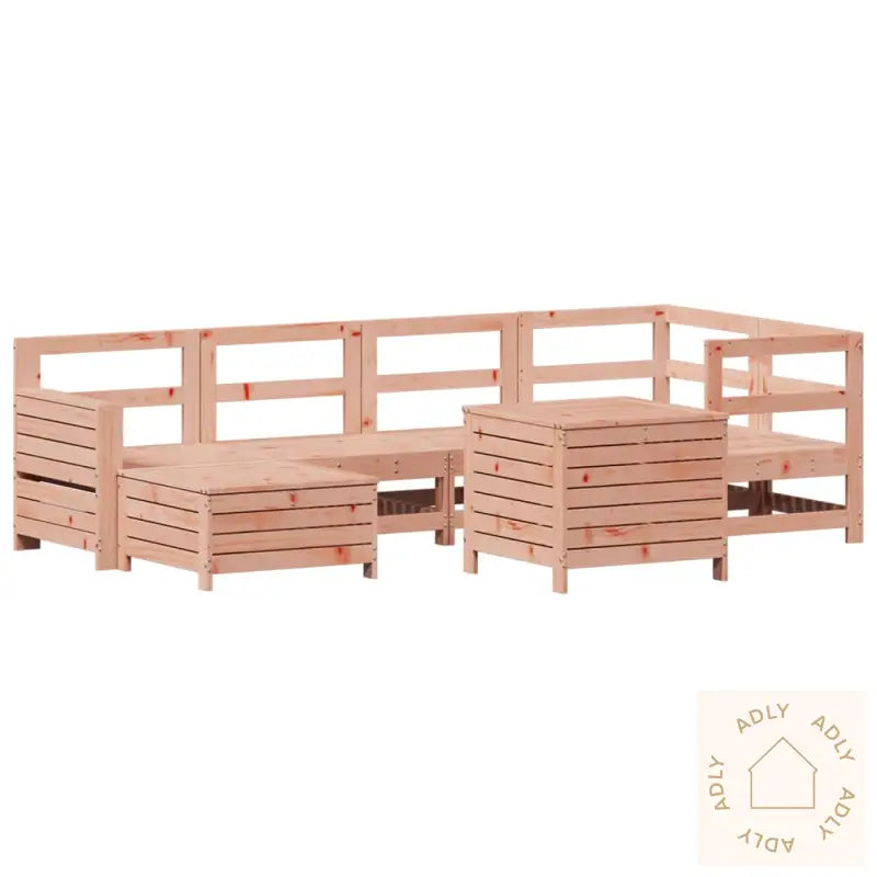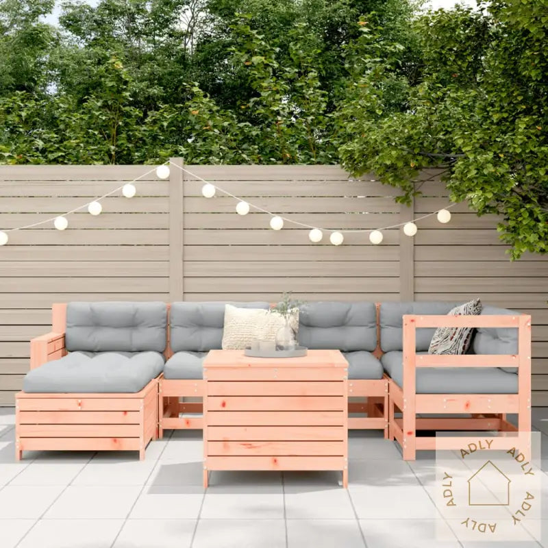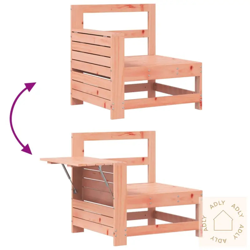 Robust og slitesterkt materiale: Settet er laget av heltre douglasgran (ubehandlet), som er kjent for sin styrke, varighet og flotte, naturlige rødbrune farge. Douglasgran kombinerer unike kornmønstre med høy stabilitet, samtidig som det tåler både vær og vind, noe som gjør det ideelt for utemøbler du vil ha glede av i mange sesonger.God ventilasjon og praktisk komfort: Det gjennomtenkte lamelldesignet sørger for god luftstrøm i både sete og rygg, og minimerer risikoen for vannansamling etter regnvær. Dette holder setet alltid tørt og komfortabelt og gir deg en mer behagelig opplevelse utendørs.Allsidig bruk: Fotskammelen fungerer ikke bare som et avslappende underlag for føttene – den kan også brukes som salongbord til drikke, mat eller dekorasjoner, slik at du får flere bruksområder i ett smart møbel.Praktisk bord og smarte løsninger: Det medfølgende hagebordet gir deg god plass til å sette fra deg kaffekoppen eller servere småretter. Sofaen har et sammenleggbart sidebord på armlenet, utstyrt med gassfjærer – så du alltid har det du trenger, lett tilgjengelig.Modulært design for fleksibilitet: Utemøblene har et modulært design, noe som gjør det enkelt å flytte på dem og tilpasse mål sete og høyde sete etter behov. Bygg din egen sittegruppe, tilpasset uteområdet ditt og de gjestene du har.Godt å vite: