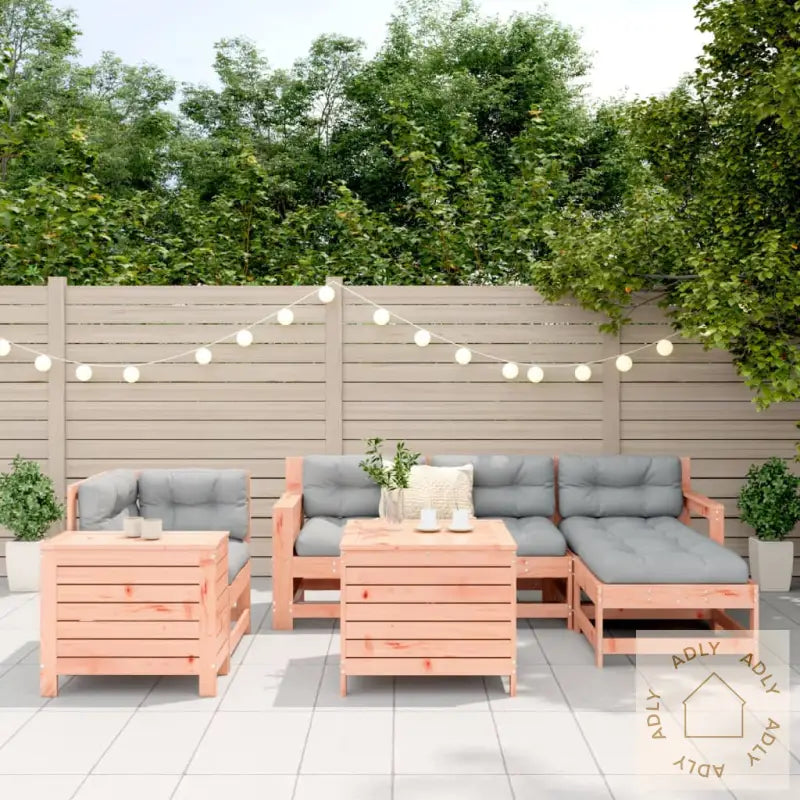 For at hagemøblene dine i heltre douglasgran skal holde seg pene lenger, anbefales det å bruke et vanntett trekk når de ikke er i bruk.Materiale: heltre douglasgran (ubehandlet)Materiale lameller: kryssfinerMaksimal lastekapasitet (per sete): 110 kgPute inkludert: neiMontering kreves: jaHjørnesete:Mål: 62/66 x 62 x 70,5 cm (B x D x H)Mål sete: 60 x 60 cm (B x D)Høyde sete fra bakken: 32 cmMidtsete:Mål: 62 x 62 x 70,5 cm (B x D x H)Mål sete: 60 x 60 cm (B x D)Høyde sete fra bakken: 32 cmSofa med armlener:Mål: 69 x 62 x 70,5 cm (B x D x H)Mål sete: 60 x 60 cm (B x D)Høyde sete fra bakken: 32 cmHøyde armlene fra bakken: 52 cmMål fotskammel: 62 x 62 x 32 cm (B x D x H)Mål bord: 62 x 62 x 53,5 cm / 62 x 31,5 x 53,5 cm (L x B x H)Leveransen inneholder:2 x hjørneseter 1 x midtsete 1 x sofa med armlener 2 x bord 1 x fotskammel