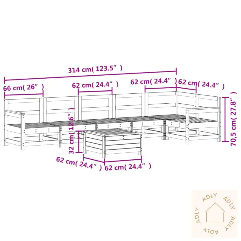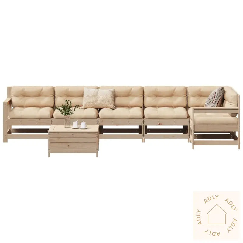 For å sikre at utemøblene dine forblir vakre over tid bør du bruke et vanntett trekk, spesielt utenfor sesong eller ved mye nedbør – dette bidrar til økt levetid for både heltre furu og øvrige materialer.Materiale: heltre gran (ubehandlet)Materiale lameller: kryssfinerMaksimal lastekapasitet (per sete): 110 kgPute inkludert: neiMontering kreves: jaHjørnesete:Mål: 62/66 x 62 x 70,5 cm (B x D x H)Mål sete: 60 x 60 cm (B x D) – romslig flate for god sittekomfortHøyde sete fra bakken: 32 cm – gir en behagelig sittehøyde til både voksen og barnMidtsete:Mål: 62 x 62 x 70,5 cm (B x D x H)Mål sete: 60 x 60 cm (B x D)Høyde sete fra bakken: 32 cmMål fotskammel: 62 x 62 x 32 cm (B x D x H)Leveransen inneholder:3 x hjørneseter 3 x midtsofa 1 x fotskammel
