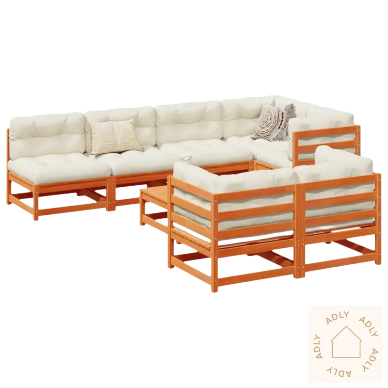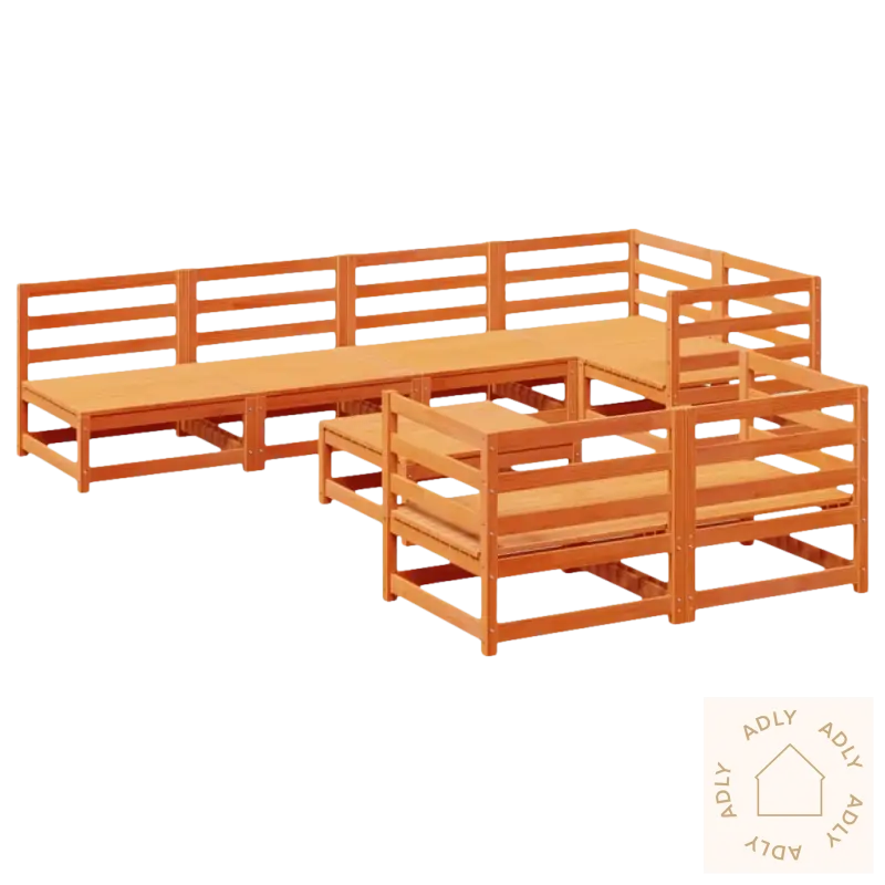 For å bevare utseendet på dine møbler i heltre furu anbefaler vi at du bruker et vanntett trekk når de ikke er i bruk.Farge: voksbrunMateriale: heltre furuLastekapasitet (per sete): 110 kgMontering kreves: jaHjørnesete:Mål: 70 x 70 x 67 cm (B x D x H)Mål sete: 63,5 x 63,5 cm (B x D)Høyde ryggstøtte: 37 cmHøyde sete fra bakken: 30 cmMidtsete:Mål: 70 x 70 x 67 cm (B x D x H)Mål sete: 70 x 63,5 cm (B x D)Høyde ryggstøtte: 37 cmHøyde sete fra bakken: 30 cmMål fotskammel: 70 x 70 x 30 cm (B x D x H)Leveransen inneholder:4 x hjørneseter3 x midtsofa1 x fotskammel