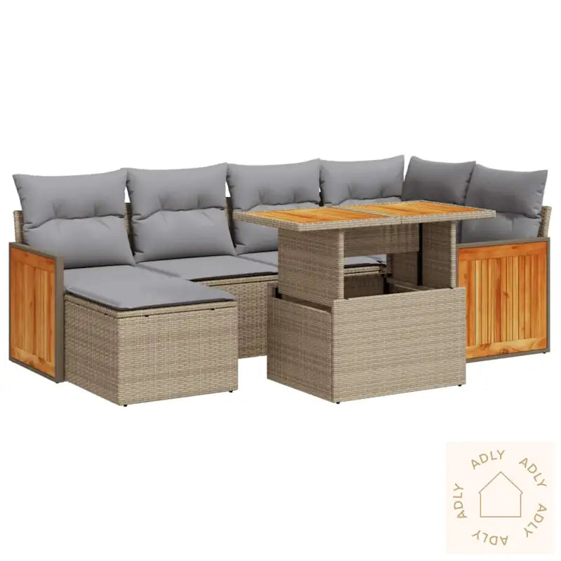 Slitesterkt materiale: Settet er laget av PE-rotting (polyrotting), et sterkt og lett syntetisk materiale som krever minimalt med vedlikehold, og som gir det samme naturlige utseendet som klassisk rotting. PE-rotting tåler sol, regn og vind, og beholder utseendet over tid – perfekt for utemøbler som skal stå ute store deler av året.Oppbevaringsfunksjon med vanntett bag: Under hvert sete finner du praktisk oppbevaringsplass med en egen vanntett bag, så du enkelt kan lagre puter, leker eller annet smått. Innervesken har toppdeksel og kan festes trygt til setet med krok-og-løkkefester, slik at alt ligger beskyttet og tørt selv på regnværsdager.Avtakbart og vaskbart trekk: Seteputene leveres med avtagbare trekk i lysegrå polyester, noe som gjør rengjøringen enkel og bidrar til at putene holder seg fine lenge. Skumfyllet i sitteputene gir ekstra komfort, mens ryggputene er fylt med myk bomullsfiber.Modulært design: Den modulære løsningen betyr at du enkelt kan flytte rundt på de ulike delene og sette sammen din helt egne utemøbelgruppe, tilpasset akkurat din terrasse eller hage – fleksibelt og smart!Godt å vite: