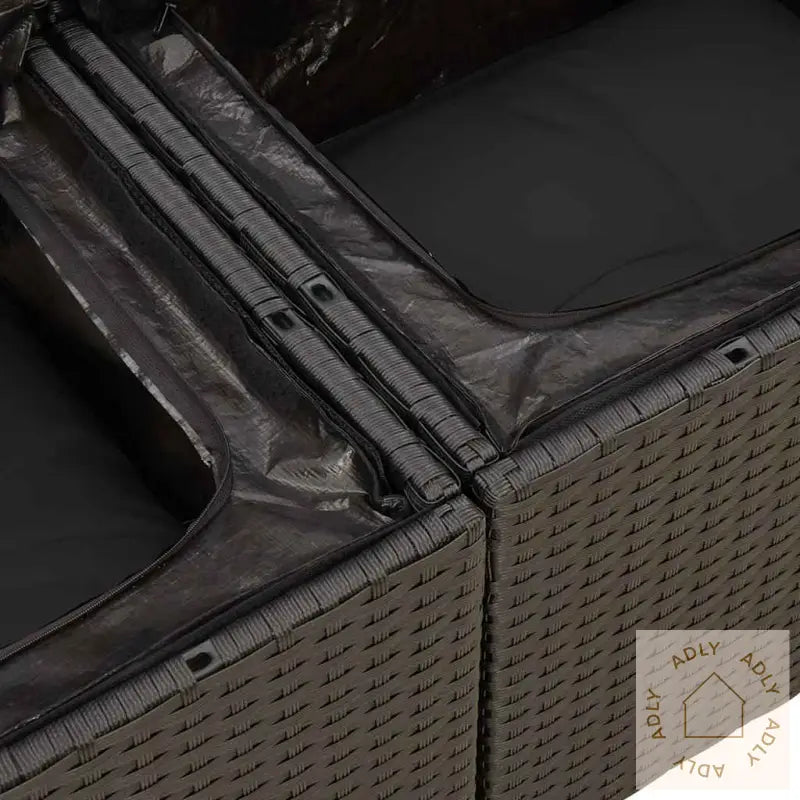 Lag i slitesterkt materiale som PE-rotting (polyrotting), kjent for å tåle det meste av vær. Dette syntetiske materialet er lett, krever minimalt med vedlikehold, og ser naturlig ut – perfekt for utemøbler. Den svarte designen og pulverlakkert stål gjør både utseendet og holdbarheten ekstra god.Alle setene har smart oppbevaringsfunksjon: Løft på setet, og du finner plass til alt fra puter til leker! Hver vanntett bag sørger for at innholdet holder seg tørt, uansett vær, og festes enkelt med krok-og-løkkefester.Seteputene er laget for bruk og trivsel – alle trekkene kan tas av og vaskes, så du holder sofagruppen din både fresh og ren hele sesongen.Det modulære designet lar deg flytte rundt på møblene og sette sammen akkurat den konfigurasjonen du har lyst på, enten det gjelder små sammenkomster eller større arrangementer under åpen himmel.Godt å vite: